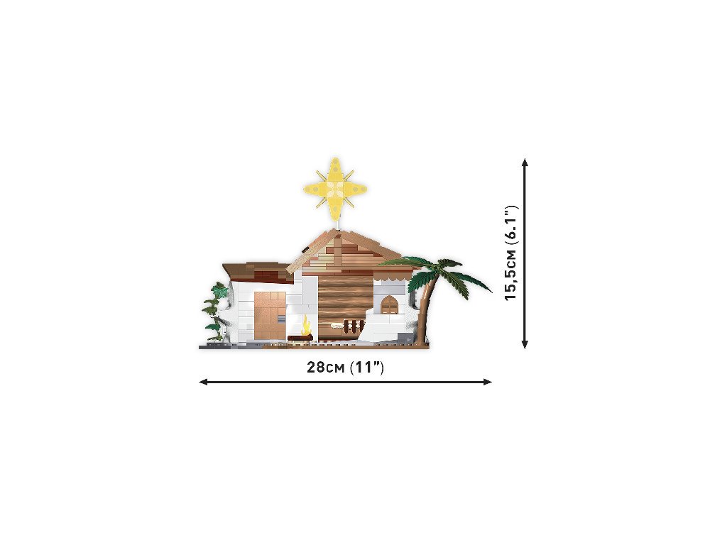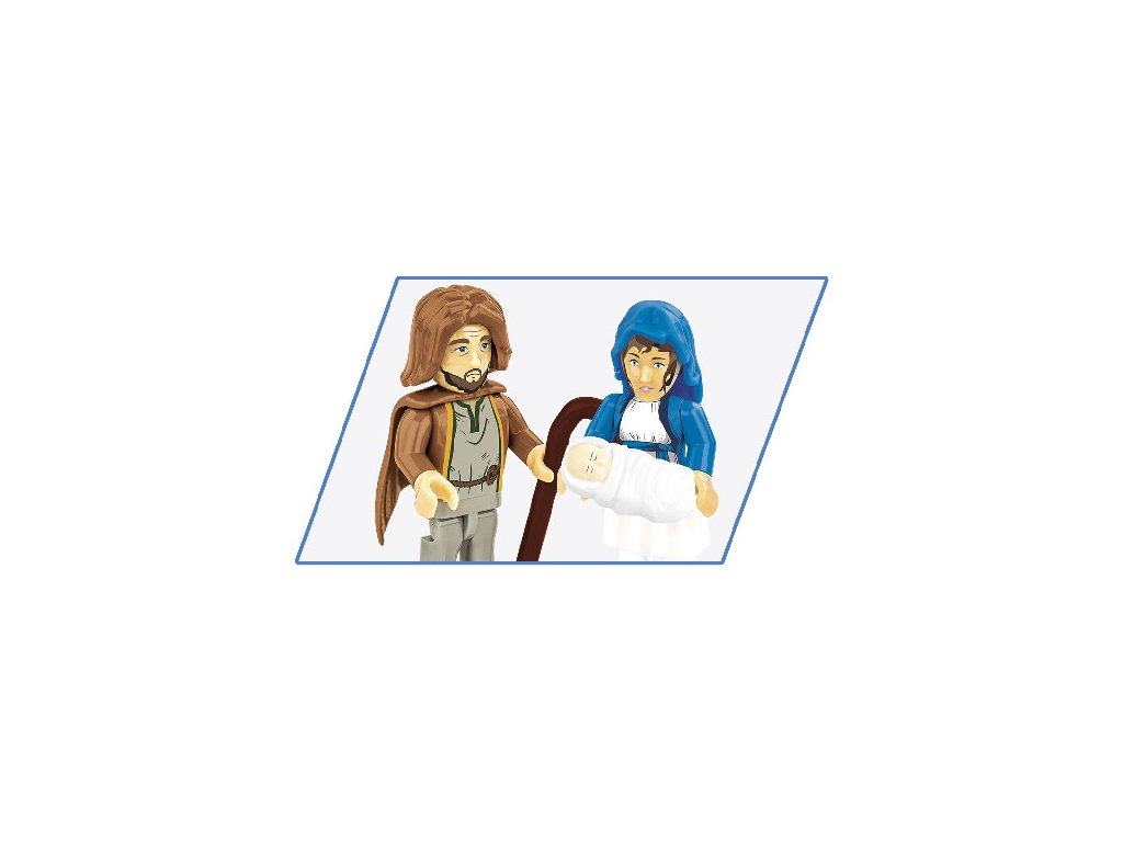 Betlému COBI nechybí charakteristické tradiční prvky. Inspirativní stavba sestávající z 381 kostek stavebnice obsahuje spoustu zajímavých rostlin, včetně břečťanu plazícího se po zdi, a palem rostoucích poblíž. Nad malou stavbou září betlémská hvězda, která přivádí mudrce z Východu. V rukou drží dary, které předají novorozenému Kristu. Kolem jsou zvířata, včetně volka, ovečky a oslíka. V samotném stáji je svatá rodina: Josef, Marie a Ježíšek.