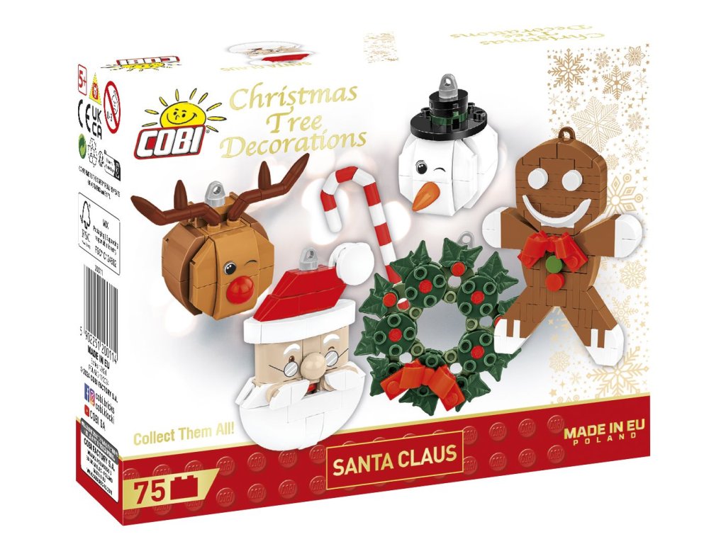 Díky COBI si Santa Claus najde cestu do každého domova! Postavte si krásnou vánoční ozdobu. Díky kostce s kroužkem můžete provléknout stužku nebo provázek a ozdobu zavěsit, zejména na vánoční stromeček! Vytvořte vánoční atmosféru nebo někomu darujte nevšední dárek! Stavba ozdoby je díky intuitivnímu návodu velmi jednoduchá. Kostky obsahují potisky, které se ani při intenzivním používání neotírají.