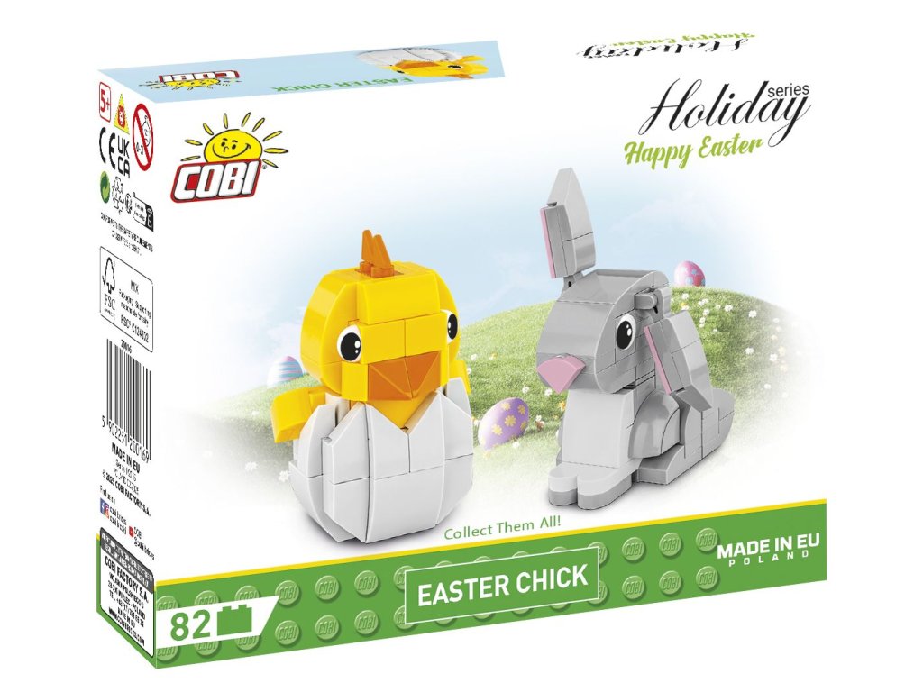 Postavte si roztomilé velikonoční kuřátko ze stavebnice Cobi. Nechcete kupovat další velikonoční sladkosti? Stavebnice Cobi je ideální řešení. Kuřátko sestavíte z 82 kostek stavebnice. Sestavené kuřátko měří 7 cm na výšku a 4,5 cm na šířku.