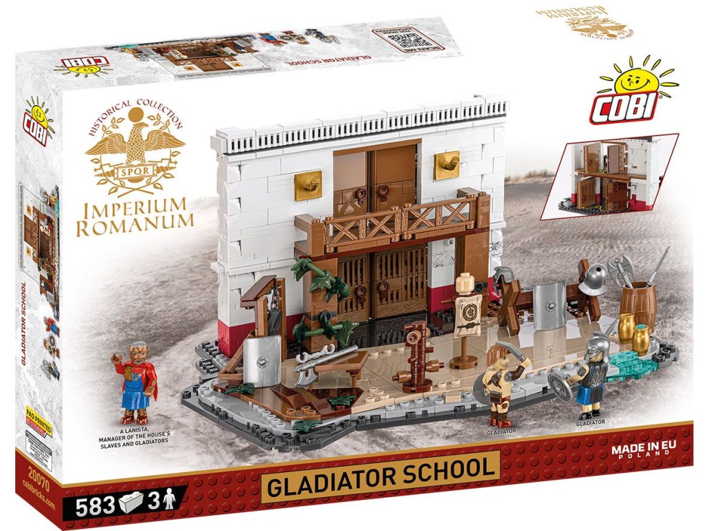 Po staletí byly oblíbenou zábavou Římanů gladiátorské zápasy, kolem kterých se rozvinul skutečný byznys! Lanista, jako majitel gladiátorské školy, připravoval otroky na zápasy. Postavte dioráma zobrazující budovu školy a cvičiště. Umístěte tam figurky nejslavnějších gladiátorů v historii Říma! Obdivujte množství detailů a doplňků, které sada obsahuje.