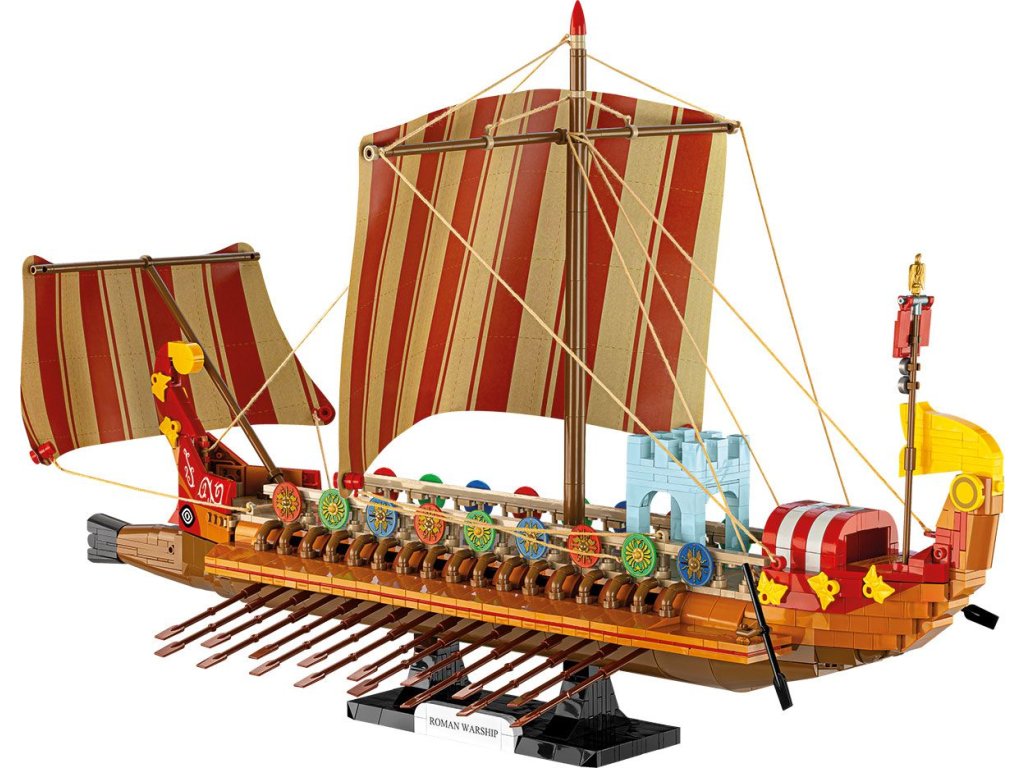 Postavte si krásnou válečnou loď samotného císaře ze stavebnice Cobi a vystavte ji na podstavci! Nasaďte barevné plachty a lanoví. Sada obsahuje tři figurky: císaře Marca Aurelia, senátora a římského generála, které mají spoustu potisků a detailů!