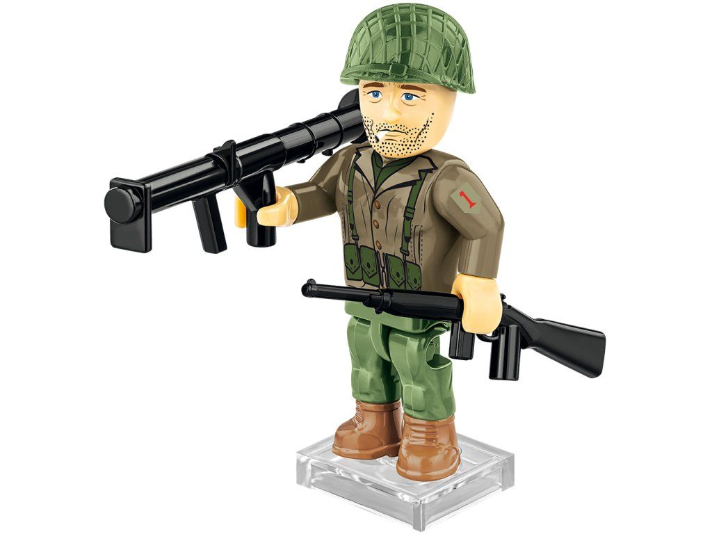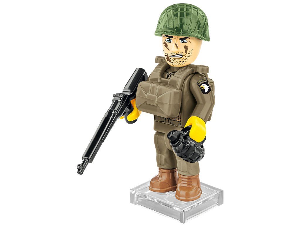 Sadu tvoří tři detailně zpracované figurky, které vás přenesou do dramatických scén Dne D: námořník z výsadkového člunu, výsadkář z legendární 101. výsadkové divize a voják z 1. pěší divize – Big Red One. Každá figurka má věrně zpracovanou uniformu odpovídající historické předloze, což zvyšuje realističnost celé sady. Figurky jsou vybaveny příslušenstvím inspirovaným skutečnou výzbrojí, jako je karabina M1, bazuka M1, puška M1 Garand, granát a dalekohled. Tyto historické detaily dělají ze stavebnice hodnotný vzdělávací nástroj, který pomáhá lépe porozumět tehdejší době.