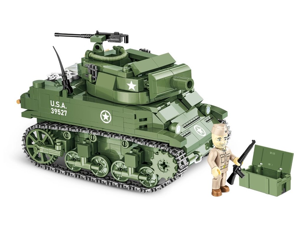 Postavte model M8 Scott, samohybné houfnice z 2. světové války, založené na podvozku lehkého tanku Stuart. Někdy se používal název M8 Generál Scott. Vozidlo bylo vyzbrojeno 75mm houfnicí umístěnou v otevřené věži. Svařovaný pancíř měl chránit posádku. Od září 1942 do ledna 1944 bylo vyrobeno přibližně 1 778 vozidel tohoto typu. Balení obsahuje 525 kostek stavebnice a 1 figurku vojáka. Model je v měřítku 1:35.
