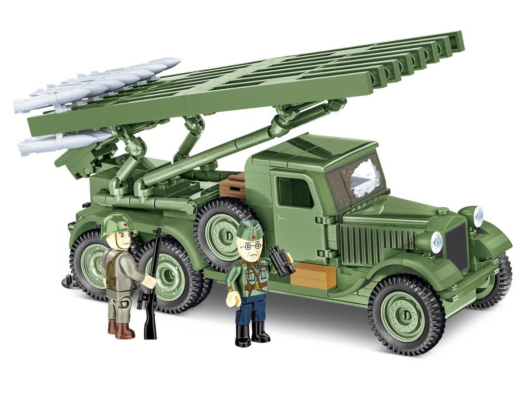 Postavte si model raketometu sovětské výroby Kaťuša. Jejich bojové použití je zaznamenáno od poloviny roku 1941. Balení obsahuje 440 kostek stavebnice a 2 figurky sovětských vojáků.