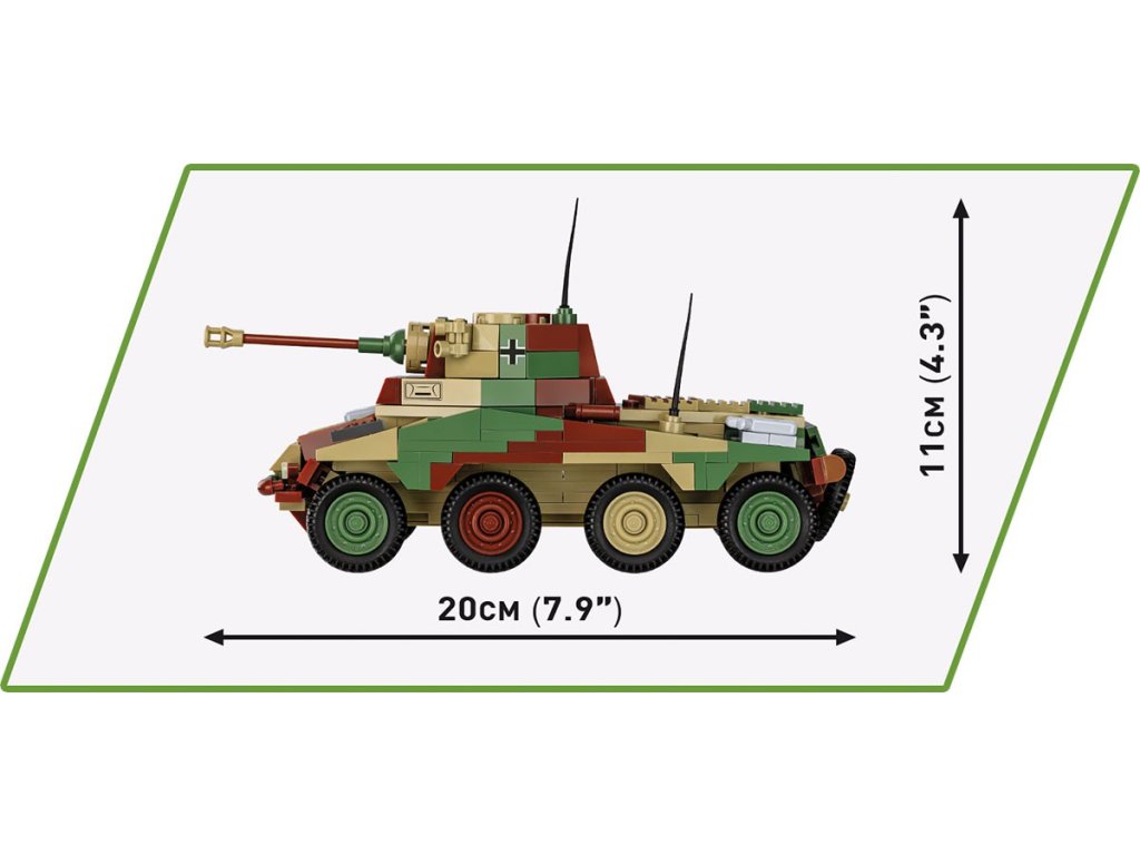 Navrhli jsme model německého těžkého obrněného vozu Sd.Kfz 234/2 PUMA v měřítku 1:35 s použitím 470 kostek stavebnice. Po sestavení je vozidlo dlouhé 20 cm a jeho velikost odpovídá jak figurkám, tak i dalším vozidlům, která v tomto měřítku vytváříme. Vozidlo zaujme detailním designem, kamufláží a vysoce kvalitními potisky, což z něj činí důležitý prvek v Historical Collection. Nejsou zde žádné samolepky, používáme pouze kvalitní permanentní potisky. Vozidlo má pohyblivé prvky, jako jsou kola, věž a kanón. Sada obsahuje také figurku představující člena posádky obrněného vozu. Celou sadu doplňuje plaketa s názvem vozidla. Sada je skvělá nejen pro mladé nadšence do historie, ale především pro dospělé sběratele a fanoušky vojenské techniky. Stavějte historii, kostku po kostce!