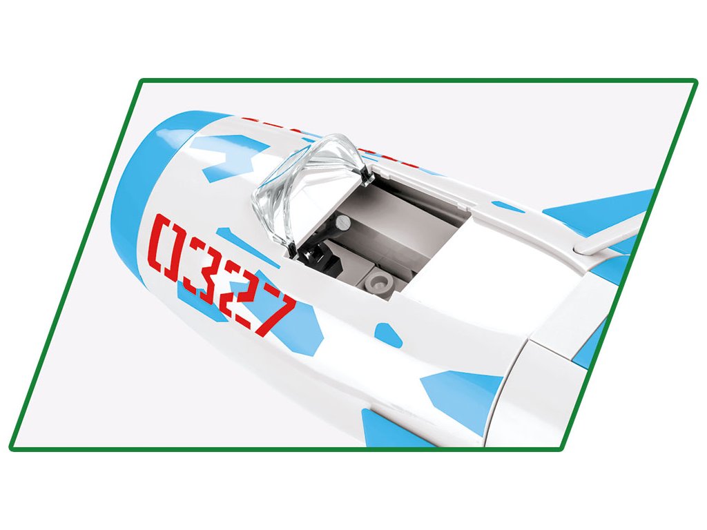 Postavte si model velmi charakteristické a krásně barevné verze stíhačky MIG-17 z války ve Vietnamu. Všimněte si, že jak maskování, tak boční číslo 0327 nejsou náhodné. Tento stíhací letoun najdete v plovoucím muzeu na letadlové lodi USS Intrepid v New Yorku. Sestavený model měří 36 x 30 x 11 cm a je v měřítku 1:32. Balení obsahuje 577 kostek stavebnice a figurku pilota.