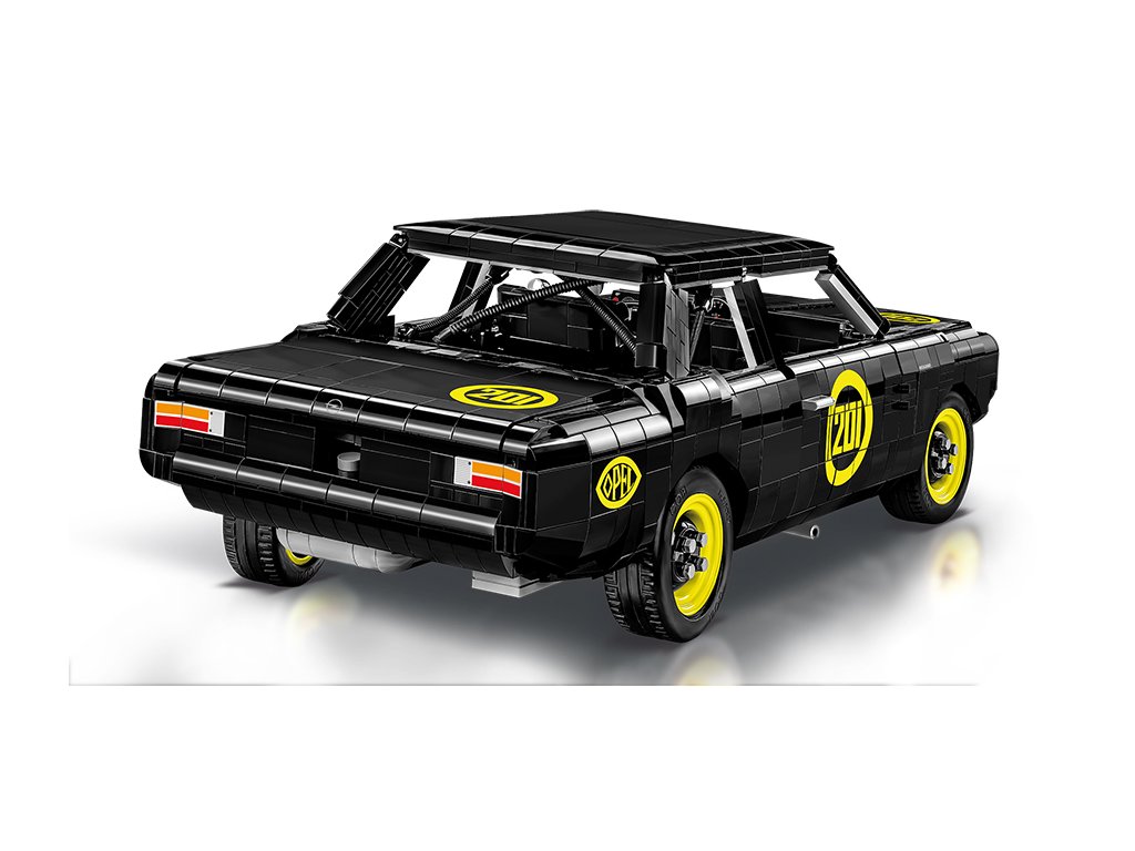 Postavte si model legendární model "Černé vdovy" v měřítku 1:12. Sestavený model měří na délku 38 cm a má mnoho funkčních částí! Balení obsahuje 2 078 kostek stavebnice, neobsahuje figurky. Sportovní vůz Opel Rekord C je vyrobený v licenci Opel.