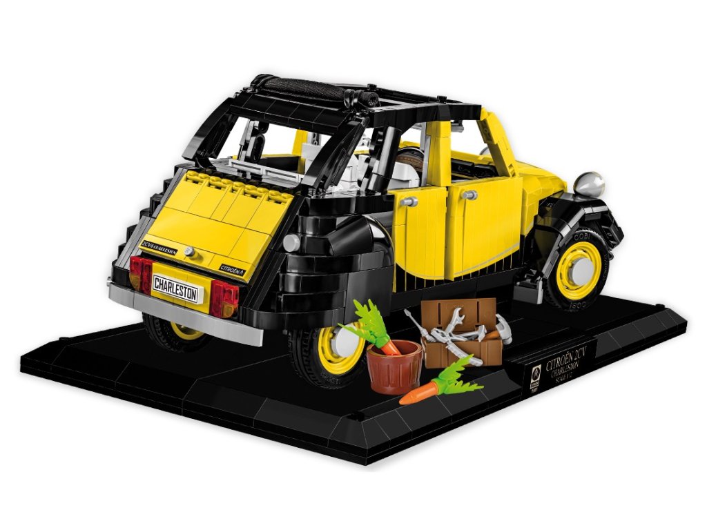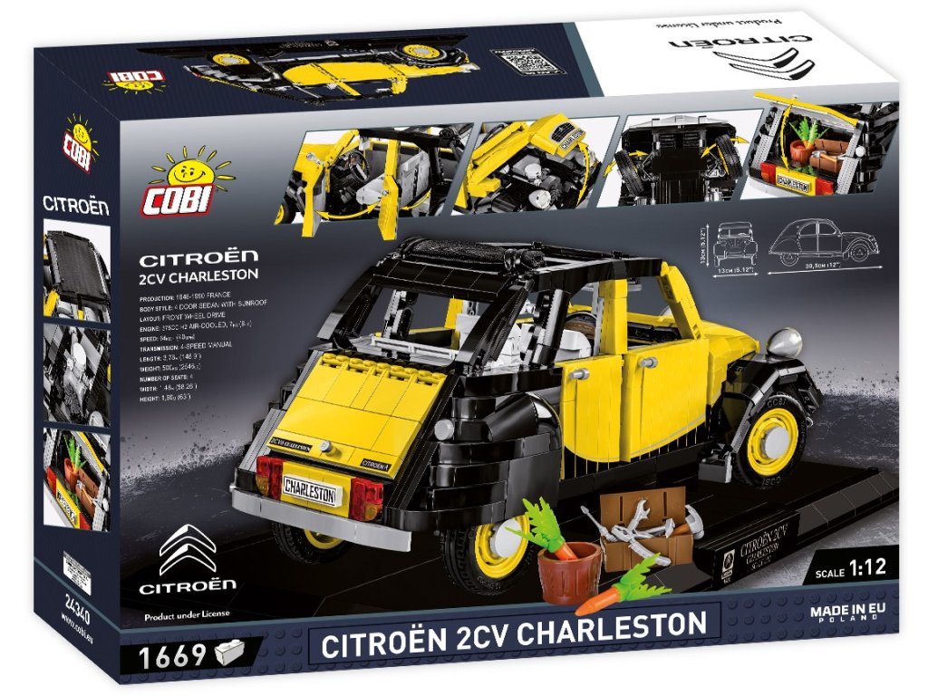 Postavte si legendu evropského automobilového průmyslu! 2CV Charleston je v měřítku 1:12. Sestavený model měří 30,5 x 13 x 13 cm, má otevírací dveře, přístup do motorového prostoru i do kufru! Můžete se podívat dovnitř, obdivovat vzhled motoru a pomocí funkčního volantu otáčet koly. Také interiér byl pečlivě reprodukován pomocí vysoce kvalitních potisků. V tomto modelu nenajdete žádné samolepky! Balení obsahuje 1 669 kostek stavebnice. Vyrobeno pod licencí Citroen.