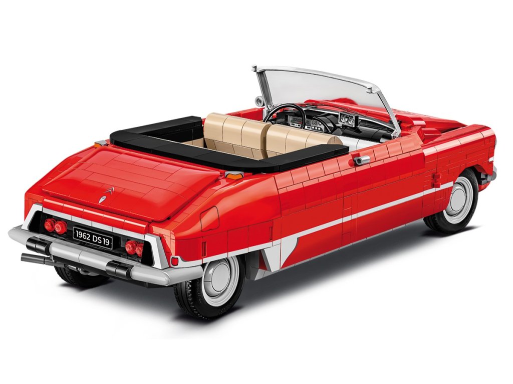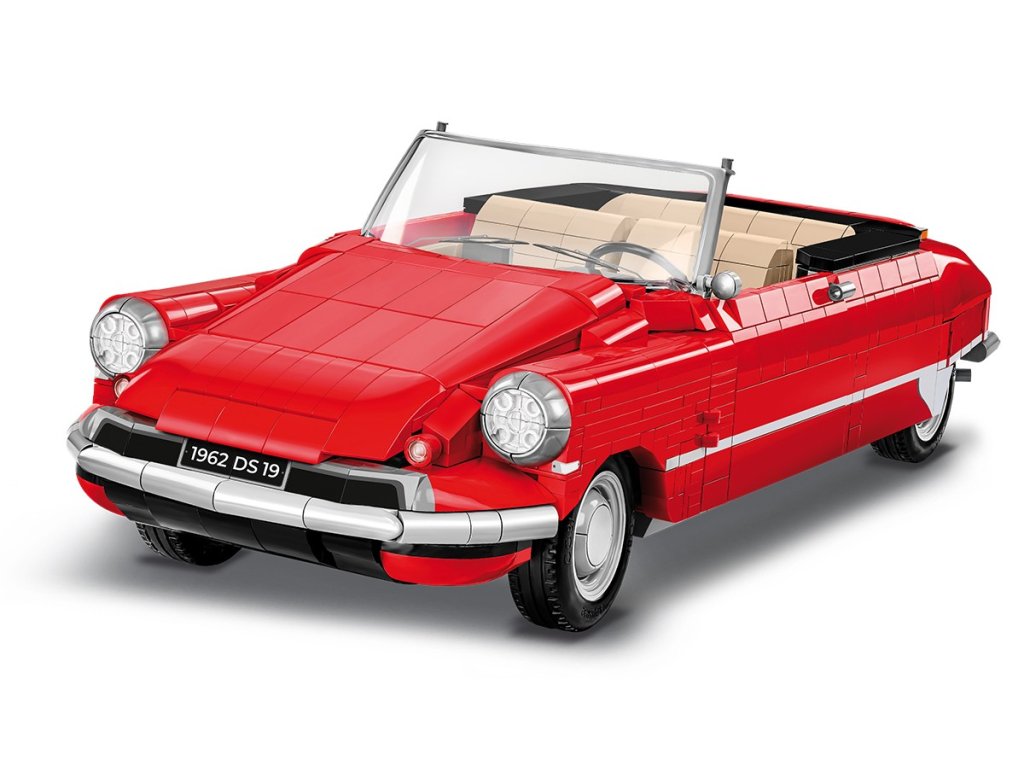 Exkluzivní Citroën DS 19 Decapotable z roku 1962 má krásnou červenou barvu karoserie. Sada obsahuje také stojánek na vystavení modelu s plaketou s názvem modelu. Model je ideální pro sběratele a milovníky klasických automobilů. Postavte si historii, kostku po kostce.