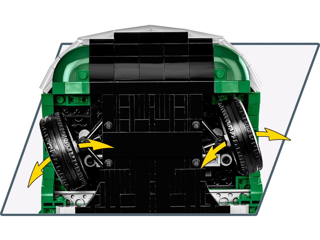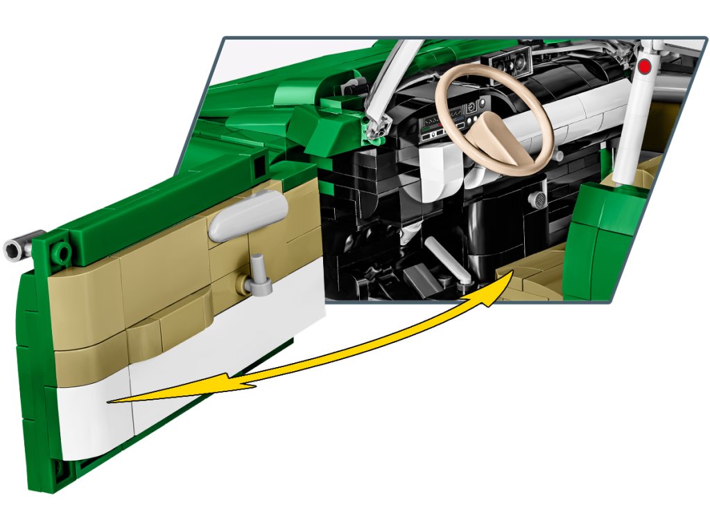 Náš model vyvinutý v licenci Citroën úspěšně reprodukuje ikonu francouzského automobilového průmyslu! Díky velkému měřítku 1:12 a použití více než 2 200 prvků jsme byli schopni věrně reprodukovat charakteristický tvar tohoto mimořádného vozu. Sestavený model dosahuje impozantní velikosti 40 cm na délku. Model se také vyznačuje řadou detailů, doplněnou vysoce kvalitními odolnými potisky. Speciálně pro design této sady jsme vyvinuli zcela nové vzory kostek, včetně charakteristického čelního skla. Prozkoumejte krásný interiér, palubní desku, funkční volant a otočná kola. Auto je také vybaveno otevíracími dveřmi a kufrem. Pod kapotou se nachází detailní motor postavený z kostek. Model je ideální pro sběratele a motoristické nadšence.