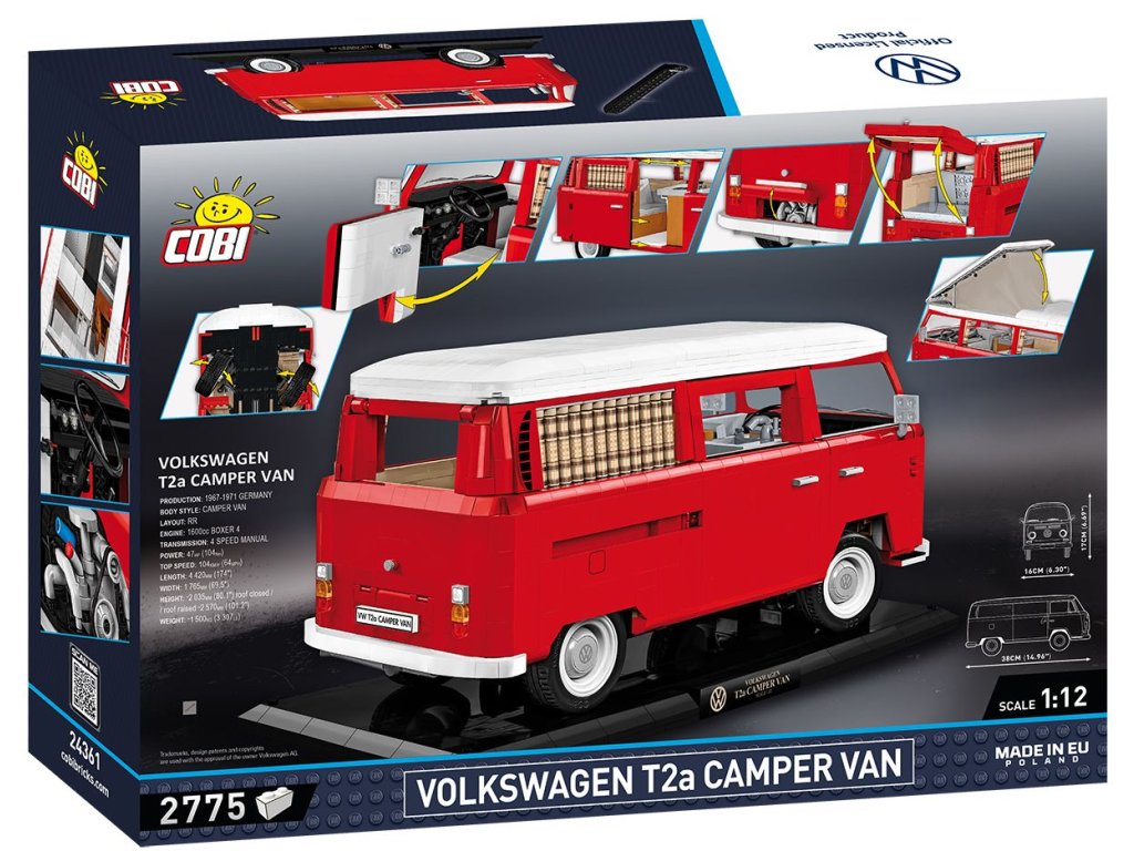Model Volkswagen T2a Camper od COBI byl reprodukován ve velkém sběratelském měřítku 1:12 a skládá se z 2775 prvků! Je to nejen výjimečná zábava při stavbě, ale také velkolepá dekorace na poličku nebo stůl.