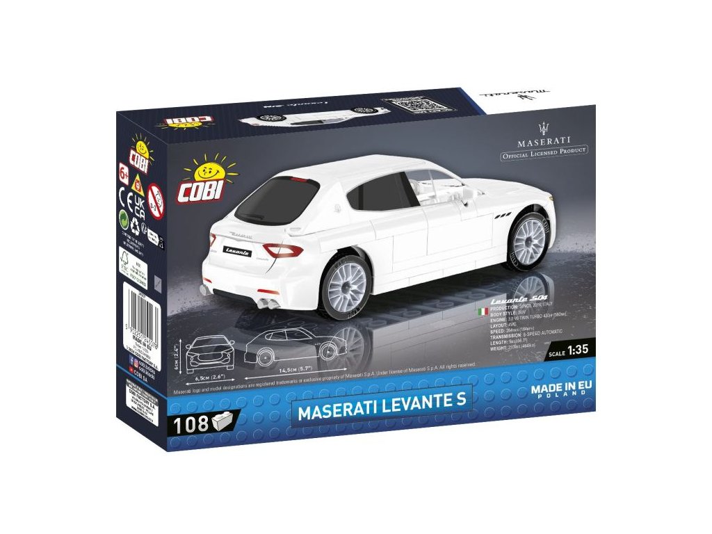 Stavební model COBI v měřítku 1:35 byl vyroben na základě licence slavné italské automobilové značky Maserati. Je to ideální model pro děti i dospělé motoristické fanoušky. Díky speciálně navrženým kostkám věrně odrážejícím tvary karoserie a odolným stálobarevným potiskům vypadají vozidla vytvořená společností COBI jako malá umělecká díla. Model je ideální pro hraní a vystavení ve sbírce dospělého motoristického fanouška. Díky pevné konstrukci a pohyblivým kolům na speciálních gumových pneumatikách funguje perfektně i jako hračka.