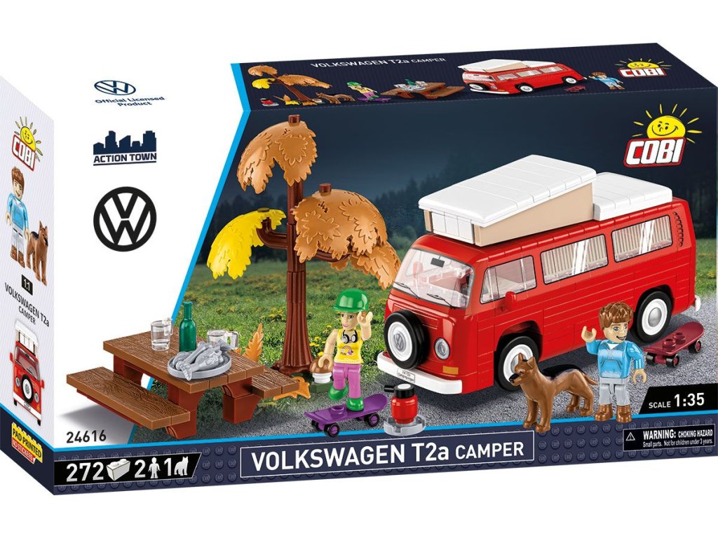 Připravte se na zábavu a nezapomenutelné dobrodružství stavbou modelu Volkswagen T2a Camper v měřítku 1:35! Sestavený model měří 14 x 7,5 x 6 cm. Balení obsahuje 272 kostek stavebnice, 2 figurky turistů a figurka psa.