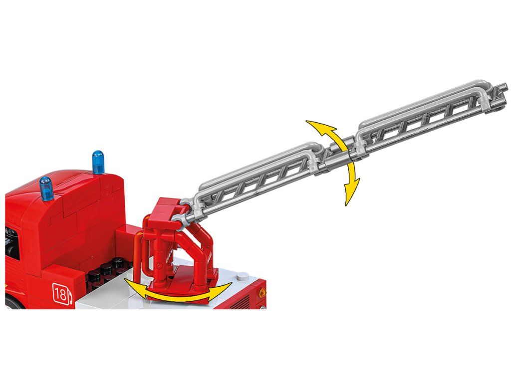 • Pohyblivé prvky a funkčnost – gumové pneumatiky, pohyblivá kola a 360° otočný hasičský žebřík zvyšují realismus a činí model ideálním jak pro vystavení, tak na hraní.