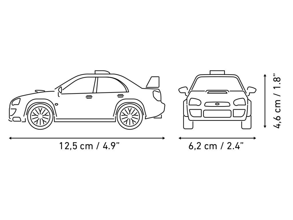 Postavte si model vozu Subaru Impreza WRC 2003 s charakteristickým "blobeye". Model je v měřítku 1:35 a sestavený měří 12,5 x 6,2 x 4,6 cm. Balení obsahuje 88 kostek stavebnice. Vyrobeno v licenci Subaru.