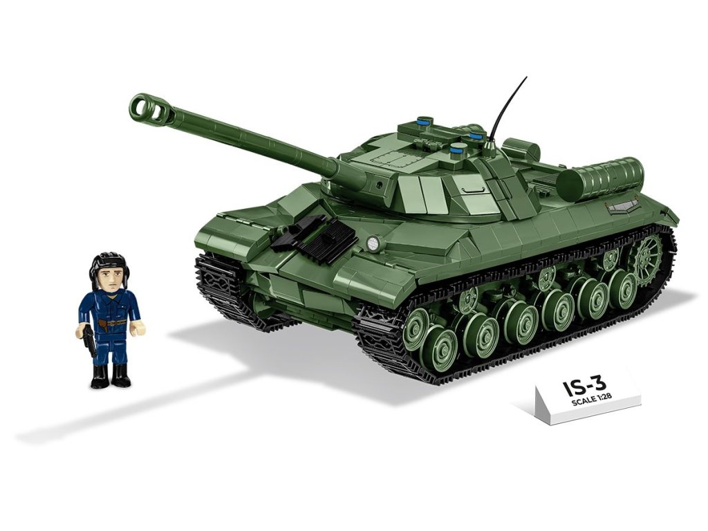 Sovětský těžký tank IS-3 byl navržen v měřítku 1:28 a přesně kopíruje charakteristické zaoblené tvary své předlohy. Model, který se skládá z 1170 prvků, je po sestavení dlouhý 35,5 cm. Pod odnímatelnou věží se nacházejí přesně reprodukované prvky interiéru. Pod servisní poklop lze umístit repliku tankového motoru W-11. Na věži jsou také kostky s vytištěnými periskopy. Tank má mnoho funkčních částí: pohyblivé pásy fungují při pohybu tanku, věž se otáčí a hlaveň se zvedá a spouští! Sada obsahuje figurku sovětského tankisty v charakteristické tmavě modré uniformě.