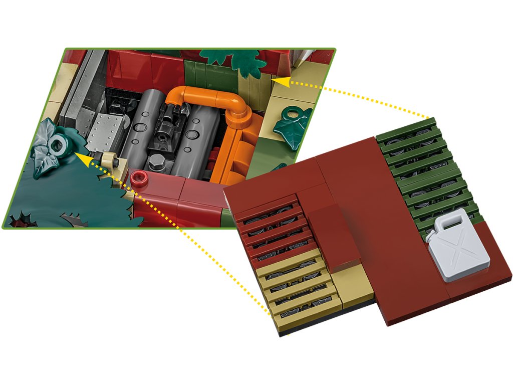 Wirbelwind bylo německé samohybné protiletadlové dělo používané během 2. světové války. Model Flakpanzer IV Wirbelwind z Executive edition se skládá z 1195 kostek stavebnice a byl navržen v měřítku 1:28. Na rozdíl od standardního tanku Panzer IV jsme v této sadě provedli mnoho konstrukčních změn. Věž tanku byla nahrazena štítovým čtyřhlavňovým protiletadlovým dělem. Přidali jsme rostlinnou kamufláž, která v kombinaci s pozdně válečným nátěrem tanku vypadá naprostě úžasně! Podvozek tanku se také mírně změnil. Dělo se otáčí o 360 stupňů a lze jej také posouvat nahoru a dolů. Po odpojení věže se můžete podívat dovnitř vozidla. Pod servisním poklopem je umístěn motor, který je vhodný k vystavení vedle modelu. Sada obsahuje detailní figurku vojáka protiletadlové jednotky Luftwaffe. Celek doplňuje černá plaketa s názvem a měřítkem modelu. Postavte si úžasné historické vozidlo z konce 2. světové války!