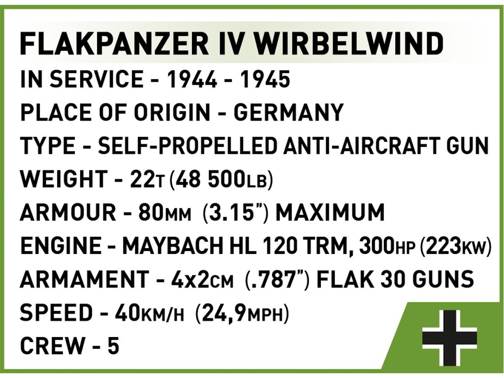 Cobi 2593 II WW Flakpanzer IV Wirbelwind, 1:28, 1195 k, 1 f, EXECUTIVE