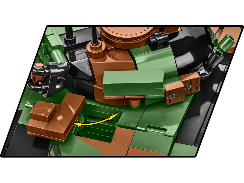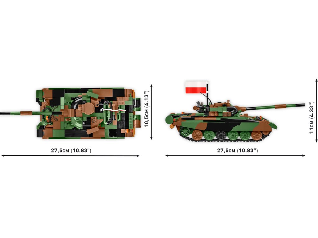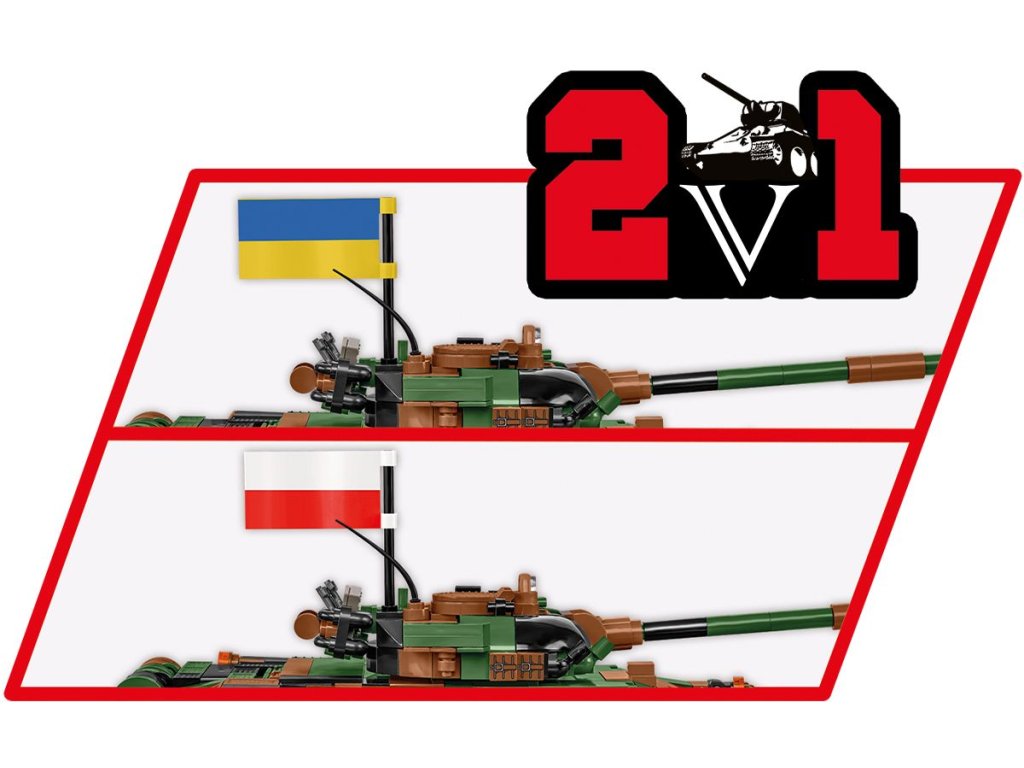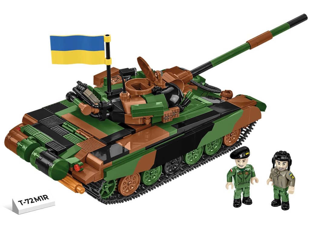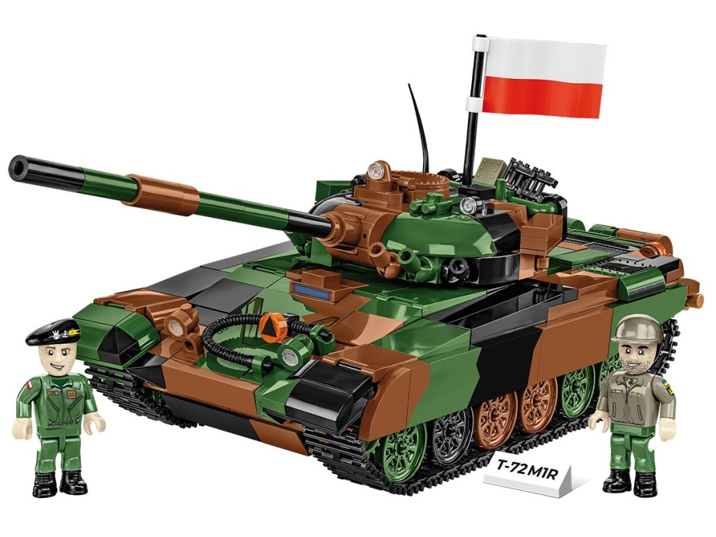 Postavte si extrémně oblíbený tank T-72 v modifikaci M1R pro polskou armádu. Tento typ tanku používají pouze dvě armády na světě. Jsou to Polsko a Ukrajina, která jej obdržela v rámci vojenské pomoci. Náš model byl vyvinut ve fantastickém měřítku 1:35 s použitím 724 prvků. Velikost tanku odpovídá dalším pozemním vozidlům vydaným v rámci kolekce Ozbrojených sil (Armed Forces). Speciálně pro tento model jsme vyvinuli novou kostku ve tvaru velmi charakteristických pojezdových kol tohoto tanku. Model obsahuje pohyblivé prvky, jako jsou kola, pásy, otočná věž a pohyblivý kanón. Poklop ve věži se otevírá, aby se do něj vešla figurka polského nebo ukrajinského tankisty, figurky jsou součástí sady. Sada obsahuje také vlajky Polska a Ukrajiny a plaketu s vytištěným názvem modelu.