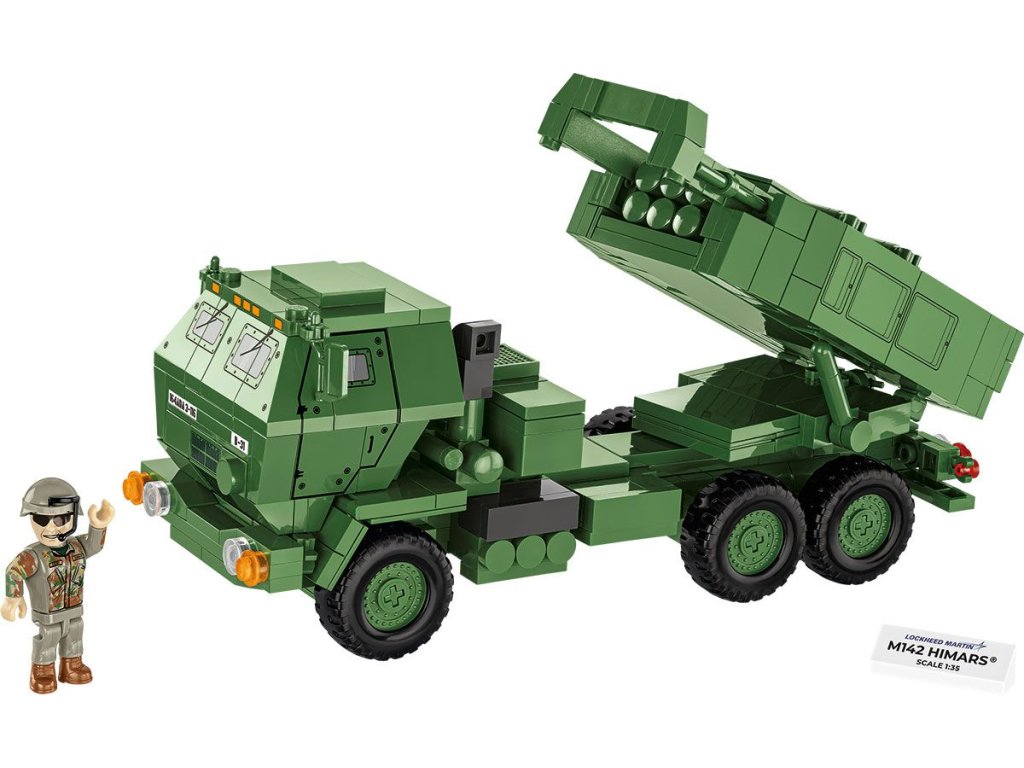 Postavte si model High Mobility Artillery Rocket System (HIMARS). Model je v měřítku 1:35 a měří 20,5 x 7 x 8 cm. Má mnoho funkčních částí. Balení obsahuje 604 kostek stavebnice a figurku vojáka. Vyrobeno v licenci Lockheed Martin.