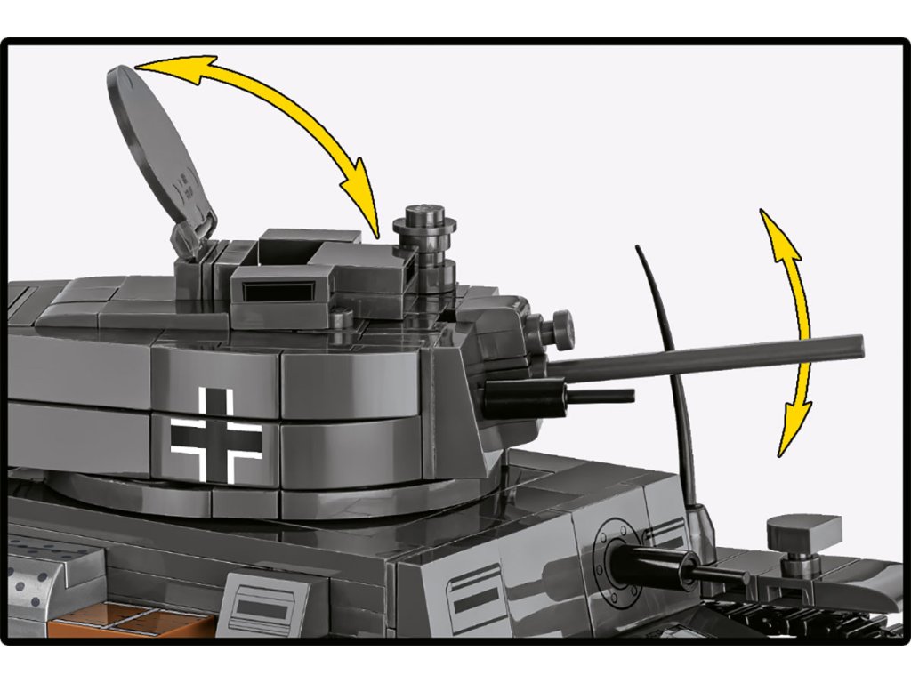 • 690 prvků – Sada se skládá z pečlivě vyrobených kostek, které umožňují postavit realistický model s historickou přesností. Každý prvek byl precizně navržen tak, aby odrážel konstrukční detaily tanku a zároveň zajišťoval stabilitu a odolnost hotového modelu.