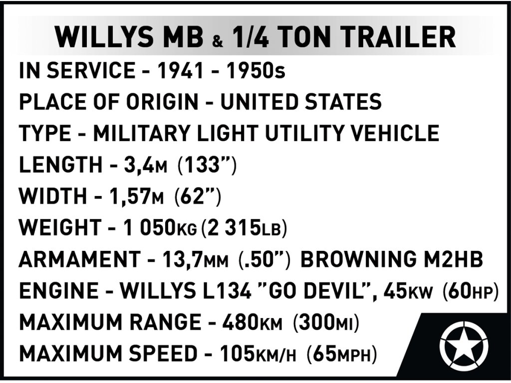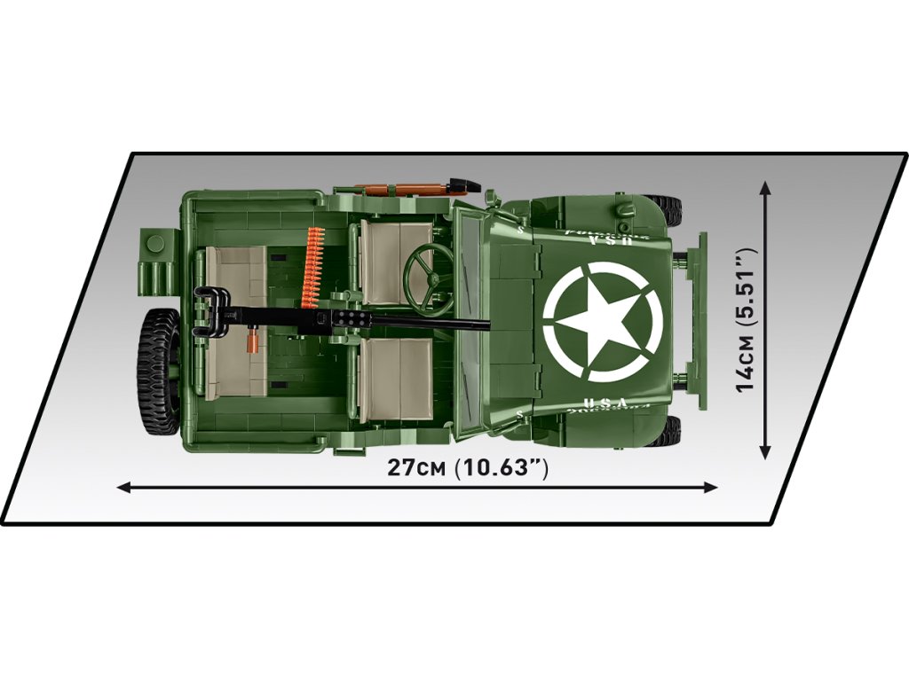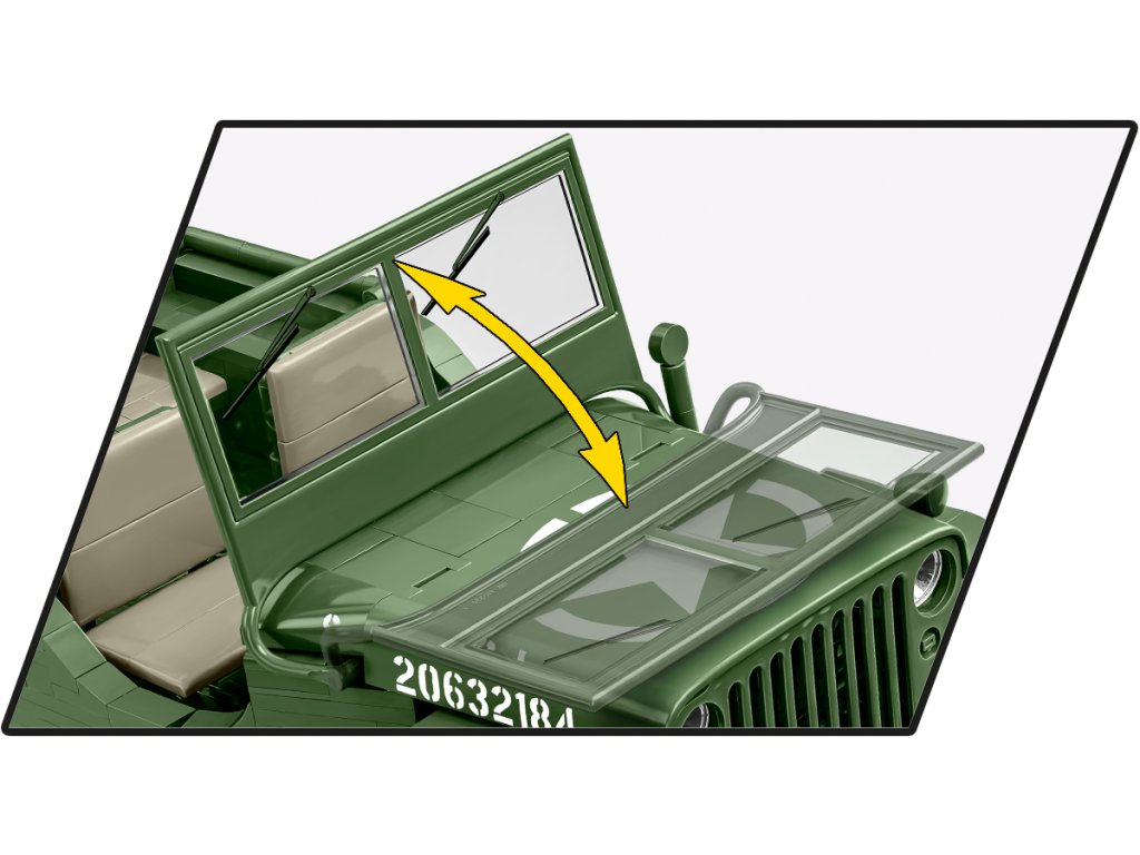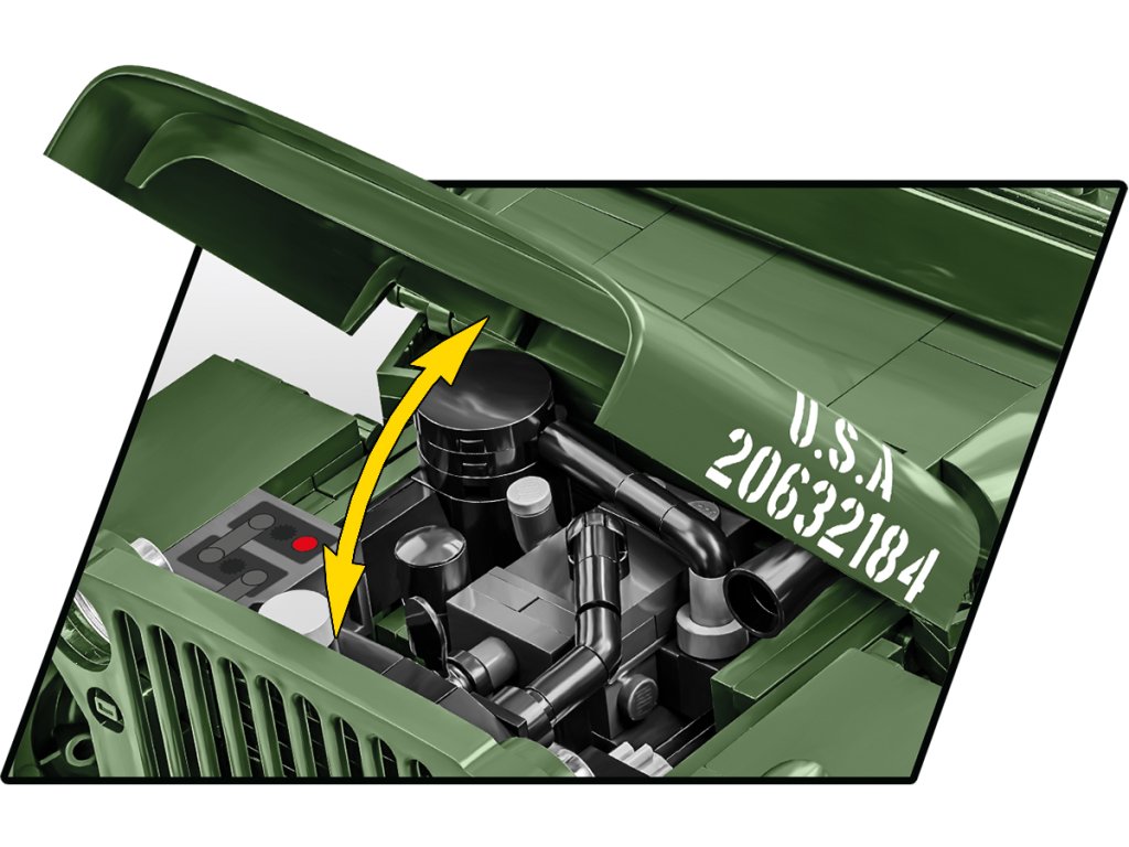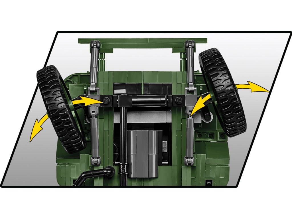 Sada se skládá z 1 580 přesných prvků. Model věrně reprodukuje všechny detaily, včetně barev a vojenského značení ze 40. let, a také prvky, jako jsou otevírací dveře, pohyblivý volant, kola s gumovými pneumatikami a motor pod kapotou. Sada v měřítku 1:12 má impozantní velikost 47 cm, což z ní dělá nejen působivý model legendárního Jeepu, ale také elegantní dekorativní prvek, který se může stát důležitou součástí scének a diorámat.