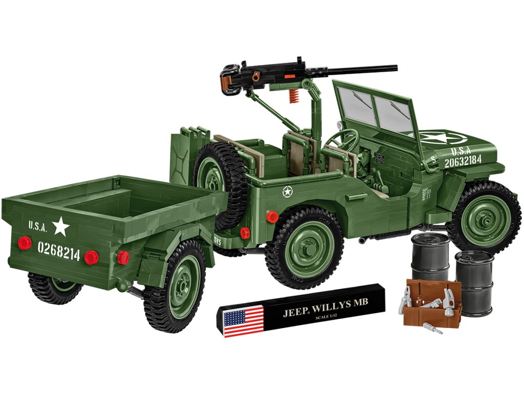 Postavte si model džípu Jeep Willys MB s přívěsem v měřítku 1:12 v Executive Edition, která má navíc sběratelskou plaketu s americkou vlajkou a názvem modelu. Sestavený model měří 47 x 14 x 15,5 cm. Má mnoho funkčních částí a doplňků. Balení obsahuje 1 580 kostek stavebnice. Vyrobeno v licenci Jeep.