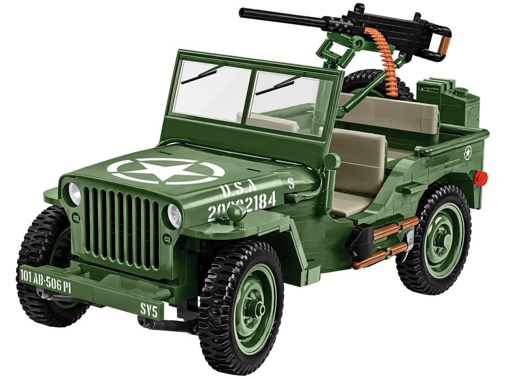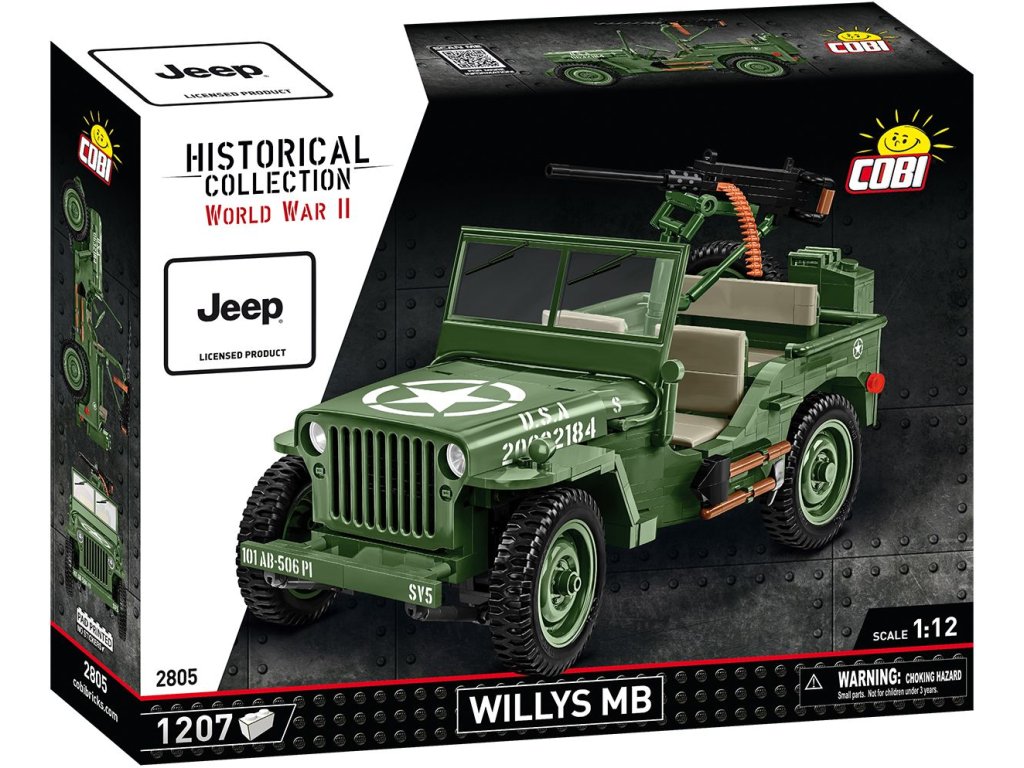 Jeep Willys MB, navržený v roce 1941, byl vozidlem, které nejenže dokázalo překonat extrémní podmínky, ale také zajistilo vojákům rychlý pohyb po bojišti. Jeho všestrannost a spolehlivost z něj udělaly jedno z nejznámějších válečných vozidel v historii. Model je v měřítku 1:12 a měří 27 x 14 x 15,5 cm. Má mnoho funkčních částí a doplňků. Balení obsahuje 1 207 kostek stavebnice. Vyrobeno v licenci Jeep.