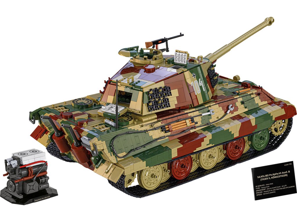 Spolu s Tankovým muzeem v Bovingtonu ve Velké Británii vyvinula společnost COBI největší, nejdetailnější a nejpokročilejší model ve své historii. Tento projekt je poctou historickému odkazu a fascinaci německou obrněnou technologií. Tato stavebnice zobrazuje Panzerkampfwagen VI Ausf. B Tiger II, lépe známý jako „Königstiger“ – Královský tygr.