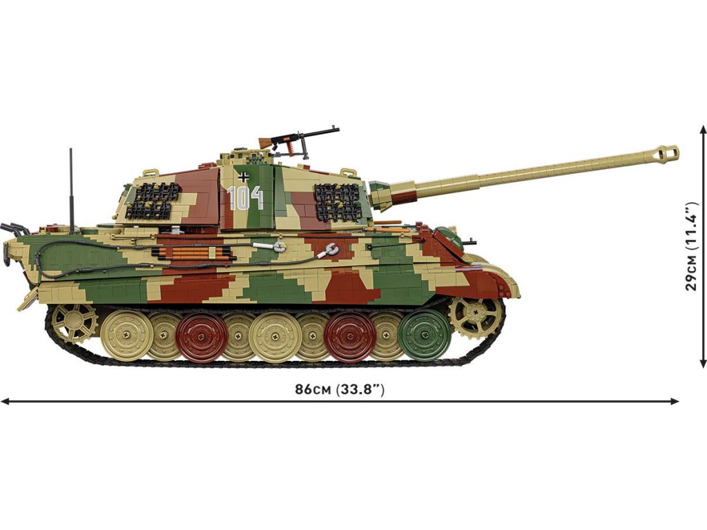 Postavte si nejvelkolepější model v historii COBI - Panzerkampfwagen VI Ausf. B Tiger II, známý jako „Königstiger“ – Královský tygr. Model je v měřítku 1:12 a sestavený měří 86 x 32,5 x 29 cm. Má mnoho funkčních částí. Vyjímatelný motor si můžete vystavit vedle tanku. Balení obsahuje 11 170 kostek stavebnice. Model byl vytvořen ve spolupráci s Tankovým muzeem v Bovingtonu ve Velké Británii.
