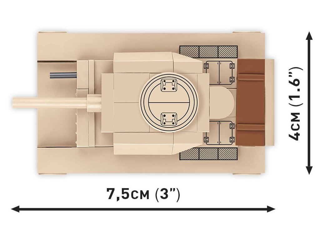 Minimodel vyrobený z kostek stavebnice COBI byl navržen v měřítku 1:72 a skládá se z 82 vysoce kvalitních prvků. Po sestavení je tank dlouhý 7,5 cm. Navzdory kompaktním rozměrům si model zachovává všechny nejdůležitější prvky své historické inspirace! Na bocích vozidla je vytištěno německé značení. Vytištěny jsou také detaily, jako jsou servisní klapky, větrání motoru a poklop. Tankem lze pohybovat díky rolovacím kolům. Věž tanku je také pohyblivá a lze ji otáčet.