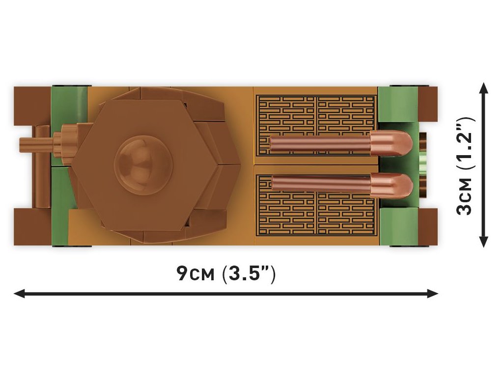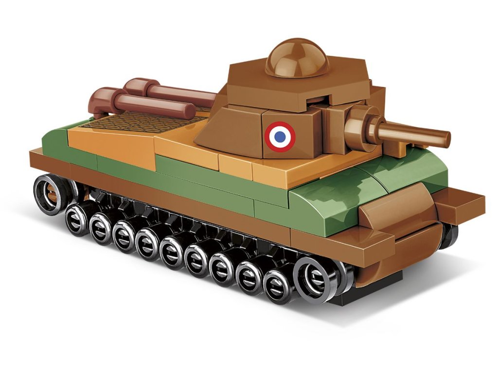 Somua S-35 byl francouzský střední tank z 2. světové války. Minimodel vyrobený z kostek stavebnice COBI byl navržen v měřítku 1:72 a skládá se z 99 vysoce kvalitních prvků. Po sestavení je tank dlouhý 9 cm. Navzdory kompaktním rozměrům si model zachovává všechny nejdůležitější prvky své historické inspirace! Toto vozidlo si nelze zaměnit s žádným jiným! Na bocích věže jsou potisky s francouzskými značkami. Potištěné jsou i větrací mřížky. Věž tanku je pohyblivá a lze ji otáčet. Tento model je ideální pro začátek vašeho dobrodružství se stavebnicemi COBI.