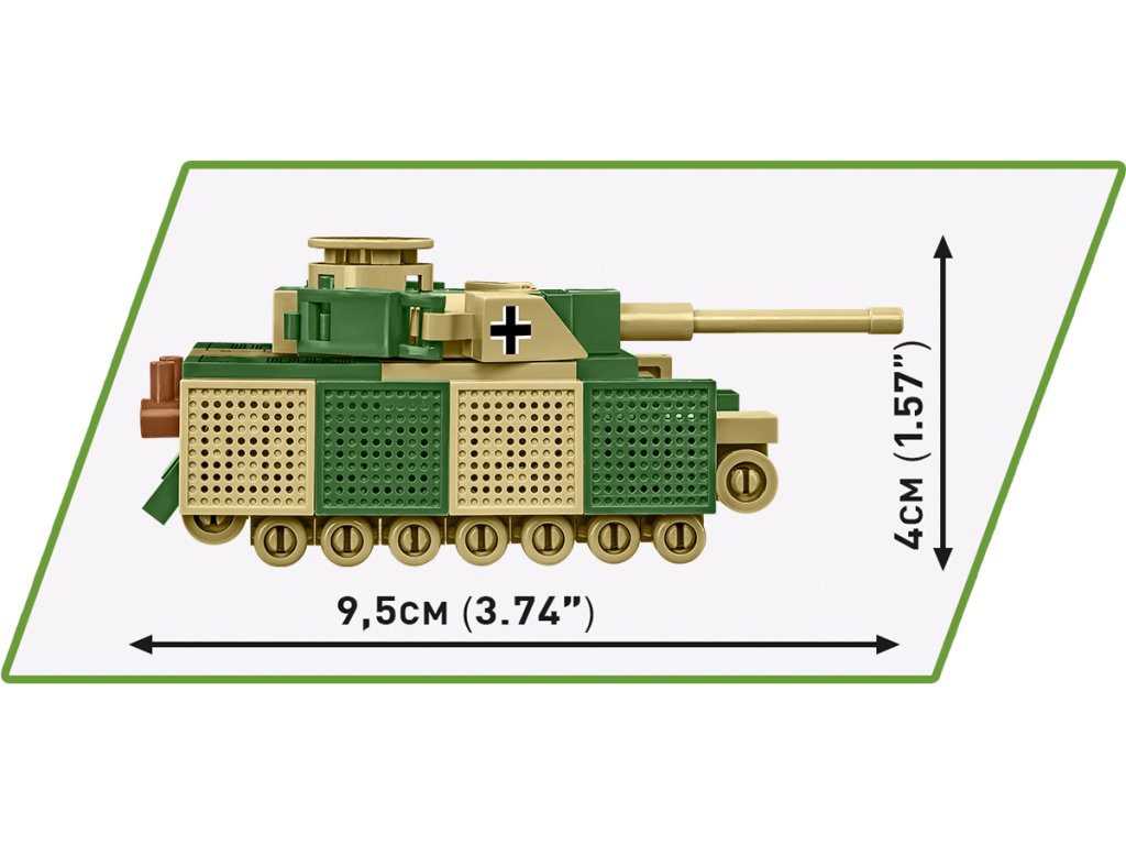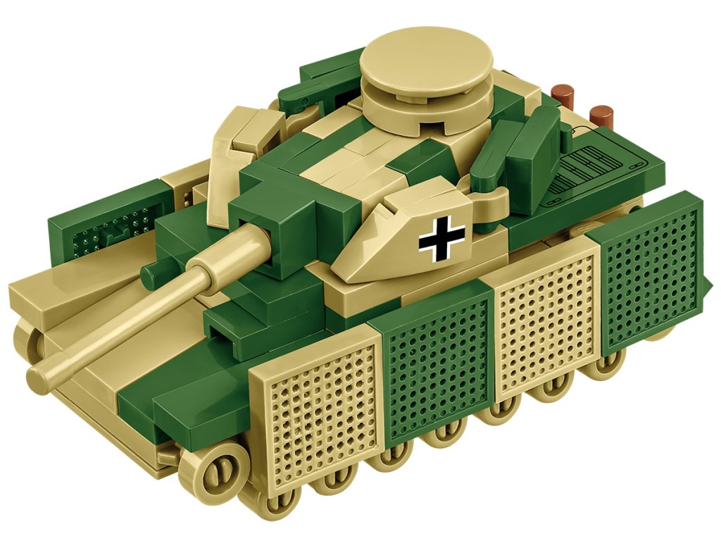 Postavte si model Panzerkampfwagenu IV, německého středního tanku vyrobeného během 2. světové války. Bylo to jedno z nejlepších obrněných vozidel té doby. Bylo vyrobeno mnoho různých verzí tohoto tanku, které se lišily tloušťkou pancíře a výzbrojí. Po celou dobu výroby od roku 1938 do roku 1945 měl Panzer IV status hlavního bojového tanku. Do roku 1942 to byl nejtěžší tank Třetí říše. Balení obsahuje 128 kostek stavebnice a model je v měřítku 1:72.