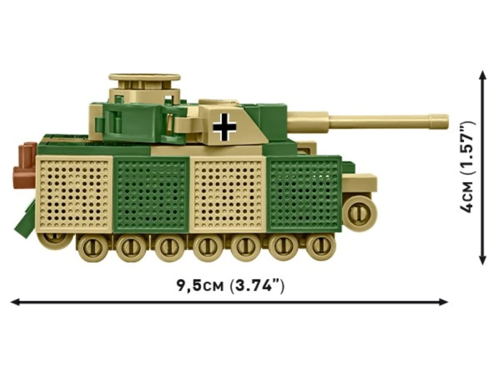 Postavte si minimodel tanku Panzer IV v měřítku 1:72 ze stavebnice COBI. Sestavený model měří 9,5 x 4,5 x 4 cm. Kola tanku se pohybují a věží lze také otáčet. Balení obsahuje 128 kostek stavebnice.