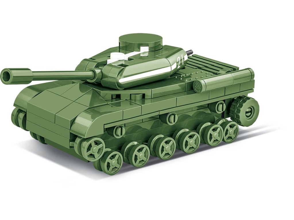 Postavte si model tanku IS-2, který byl vyvinut v roce 1943 jako nástupce dřívějších modelů těžkých tanků sloužících v Rudé armádě. Jeho posádku tvořili 4 vojáci. Hlavní výzbroj tvořilo 122mm dělo, které dokázalo prorazit pancíře nejlepších německých tanků jako Tiger nebo Panther. IS-2 sehrál důležitou roli v bitvě o Berlín, kde přispěl ke konečné porážce Třetí říše. Balení obsahuje 130 kostek stavebnice a model je v měřítku 1:72.
