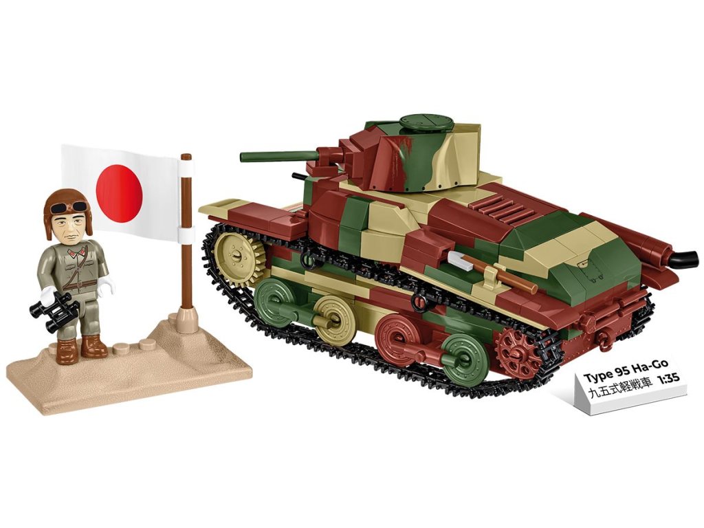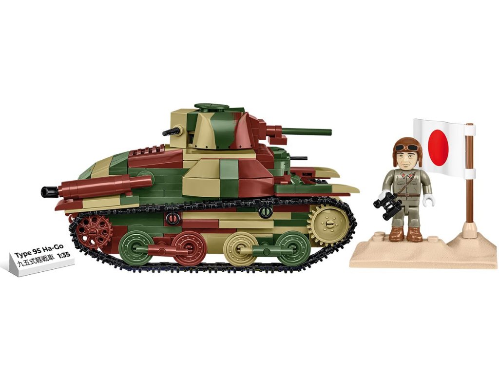 Poprvé v Historical collection od COBI uvádíme dlouho očekávané japonské vozidlo! Typ 95 Ha-Go byl lehký tank používaný během 2. světové války. Navržen ve 30. letech 20. století, byl hlavním lehkým tankem Japonské císařské armády. Typ 95 Ha-Go se zúčastnil mnoha důležitých bitev, včetně bojů na Filipínách, v Barmě a na Guadalcanalu. Náš model byl navržen v měřítku 1:35 a skládá se z 380 prvků. Sada obsahuje figurku japonského tankisty a dvojjazyčný štítek s označením. Kola, pásy a věž tanku jsou pohyblivé. Celou sadu doplňuje kostka s fragmentem terénu a japonskou vlajkou! Na tanku i figurce jsou vysoce kvalitní potisky, v sadě nenajdete žádné samolepky.