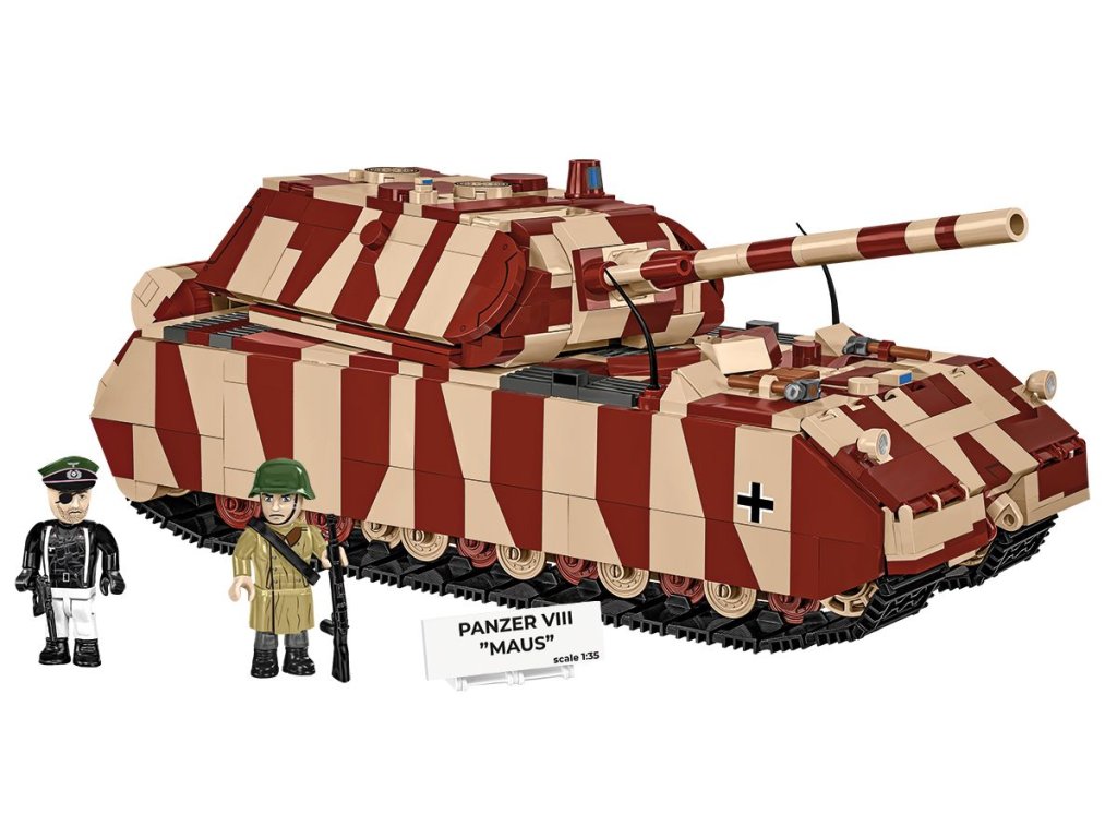 Postavte si model největšího tanku v historii - Panzer VIII Maus. Model je v měřítku 1:35 a měří 30,5 x 11 x 11 cm. Má mnoho funkčních částí. Balení obsahuje 1 353 kostek stavebnice a 2 figurky vojáků.