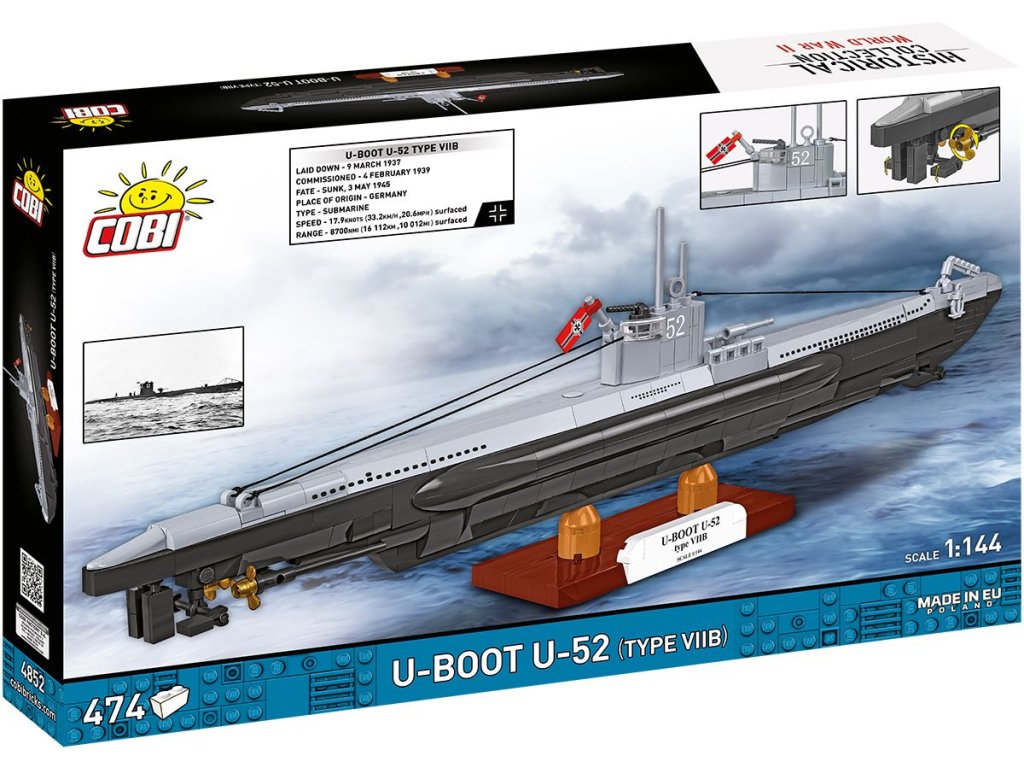 Cobi 4852 II WW U-Boot U-52 (type VIIB), 1:144, 474 k