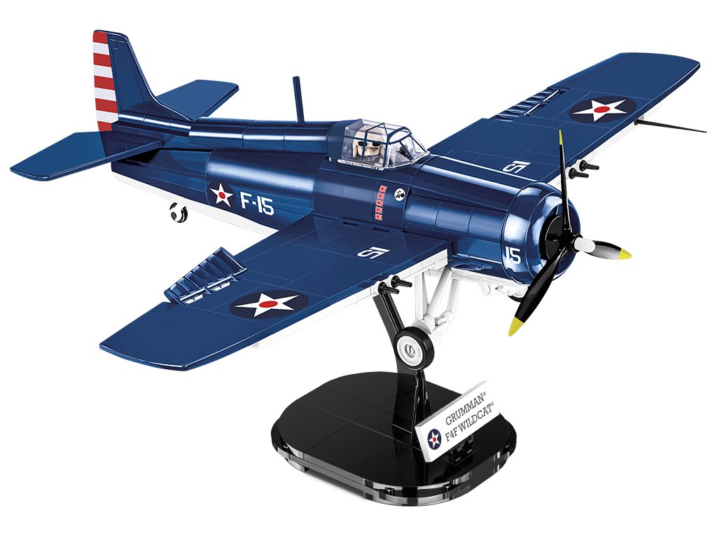 Grumman F4F Wildcat byla palubní stíhačka amerického námořnictva z 2. světové války postavená v závodě Grumman. Když USA v roce 1941 vstoupily do války, byly Wildcats primárními palubními stíhači amerického námořnictva a postupně nahrazovaly starší letouny ze základních perutí. V Pacifiku byly hlavními protivníky Wildcatů japonské stíhačky Mitsubishi A6M, zvané „Zero“. Náš letoun dostal historické barvy podle pilota, který se stal prvním stíhacím esem amerického námořnictva! Zvláště pozoruhodné jsou takové historické detaily, jako je znak s kočkou Felix a počet sestřelů umístěných vedle kokpitu. Model je v měřítku 1:32 a sestavený měří 27,5 x 35,5 x 10,5 cm. Balení obsahuje 375 kostek stavebnice a figurku pilota.