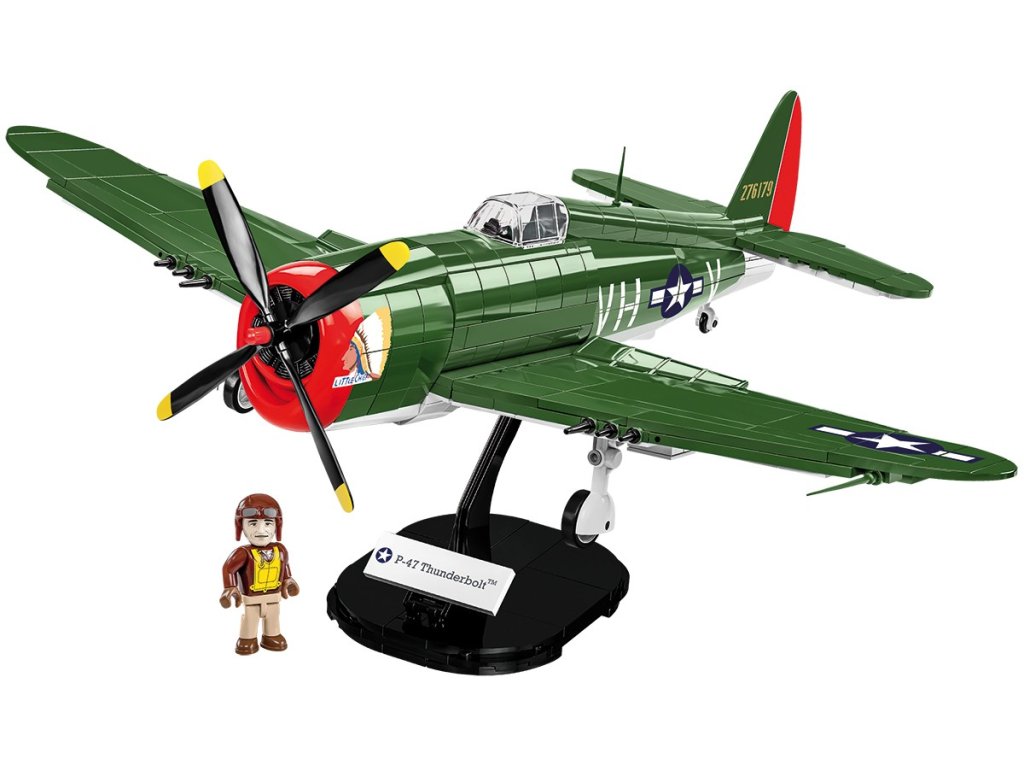 Postavte si model amerického letounu letounu P-47 Thunderbolt™ z 2. světové války. Model je v měřítku 1:32 a měří 35 x 12 a rozpětí křídel má 40 cm. Má mnoho funkčních částí. Balení obsahuje 477 kostek stavebnice a figurku pilota.