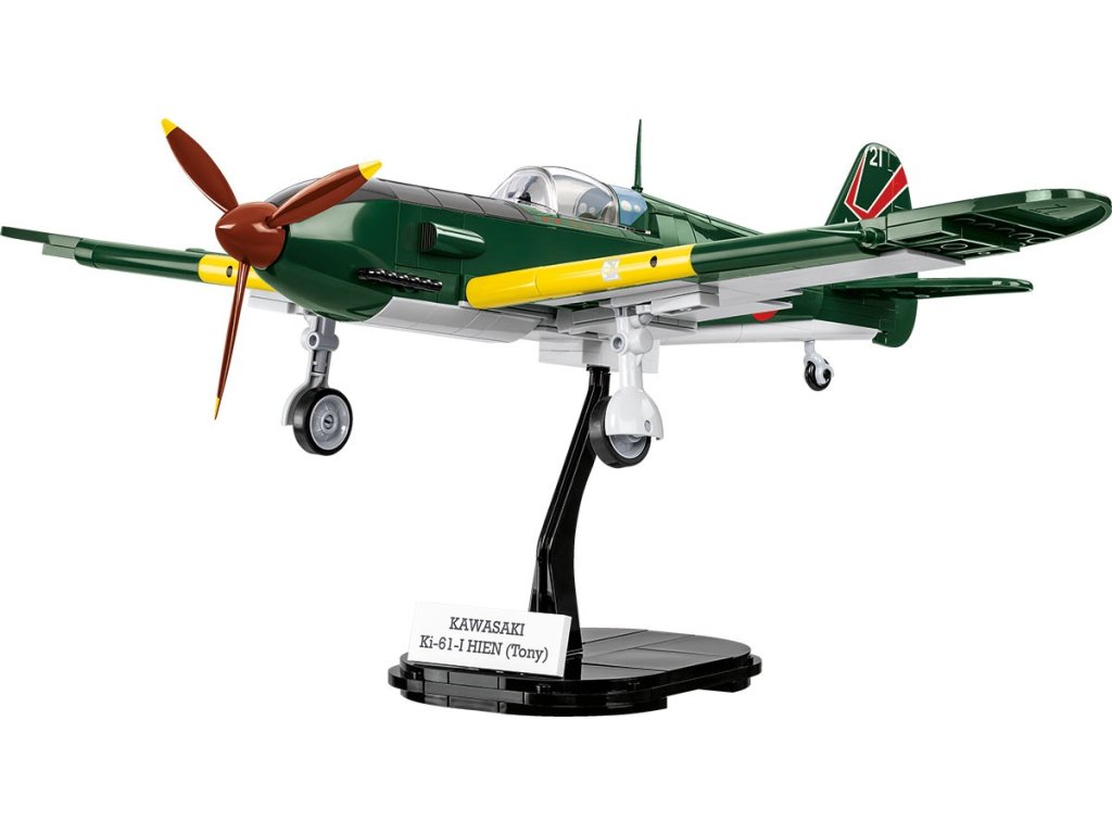 Postavte si model japonského letounu Kawasaki KI-61 (japonsky "létající vlaštovka"). z 2. světové války. Zpočátku měli Američané podezření, že letadlo je kopií italského designu a dali mu přezdívku „Tony“ naznačující italské kořeny. Oficiální japonský název je Army Fighter Model 3. Vyrobeno jich bylo více než 3000 kusů. Poprvé se s ním setkali američtí letci nad přístavem v Jokohamě při náletu na Doolittle 18. dubna 1942. Náš model je v měřítku 1:32. Balení obsahuje 324 kostek stavebnice a figurku pilota.