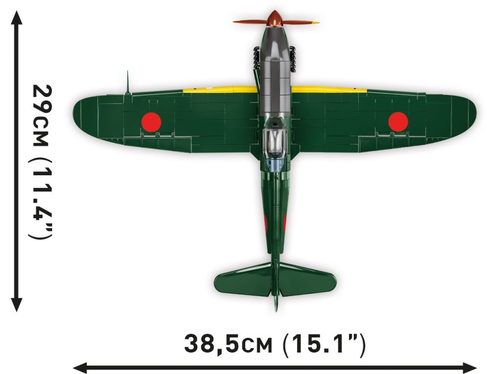 Postavte si model japonského letounu Kawasaki KI-61 (japonsky "létající vlaštovka") z 2. světové války. Model je v měřítku 1:32 a měří 29 x 11 cm a rozpětí křídel má 38,5 cm. Má mnoho funkčních částí. Balení obsahuje 324 kostek stavebnice a figurku pilota.