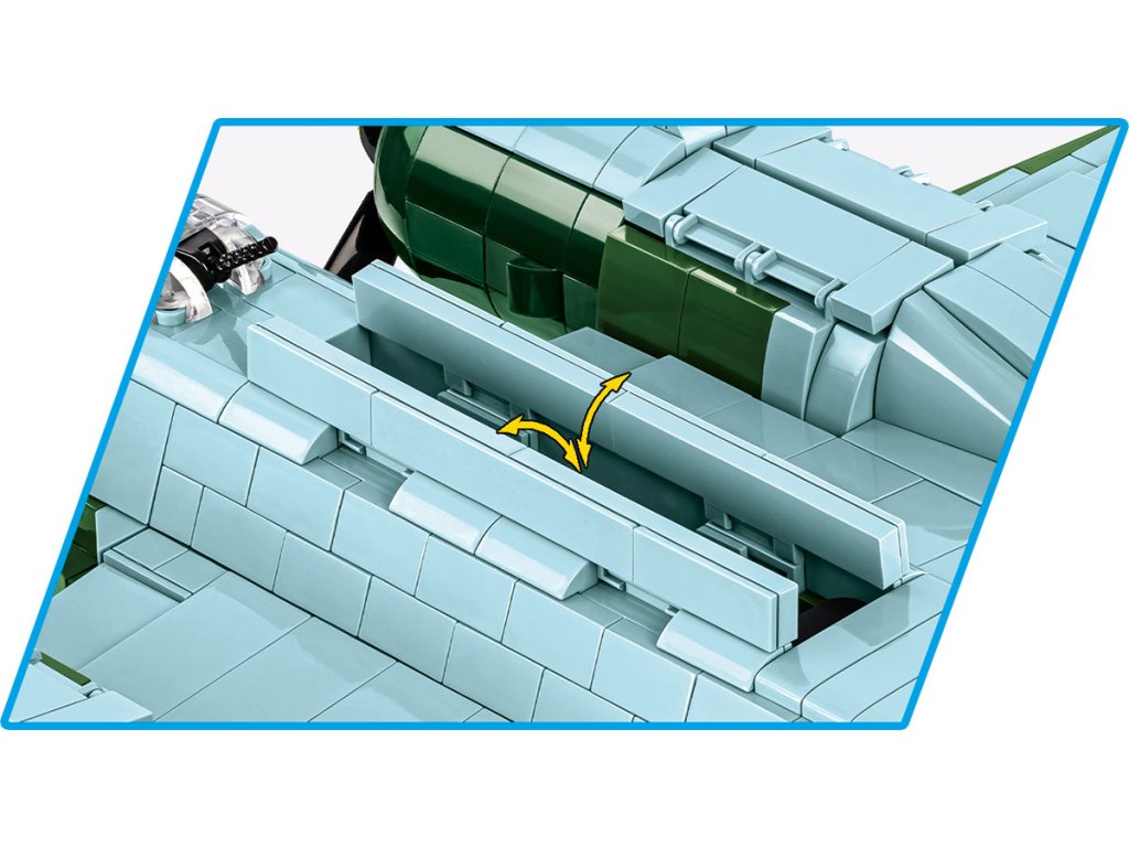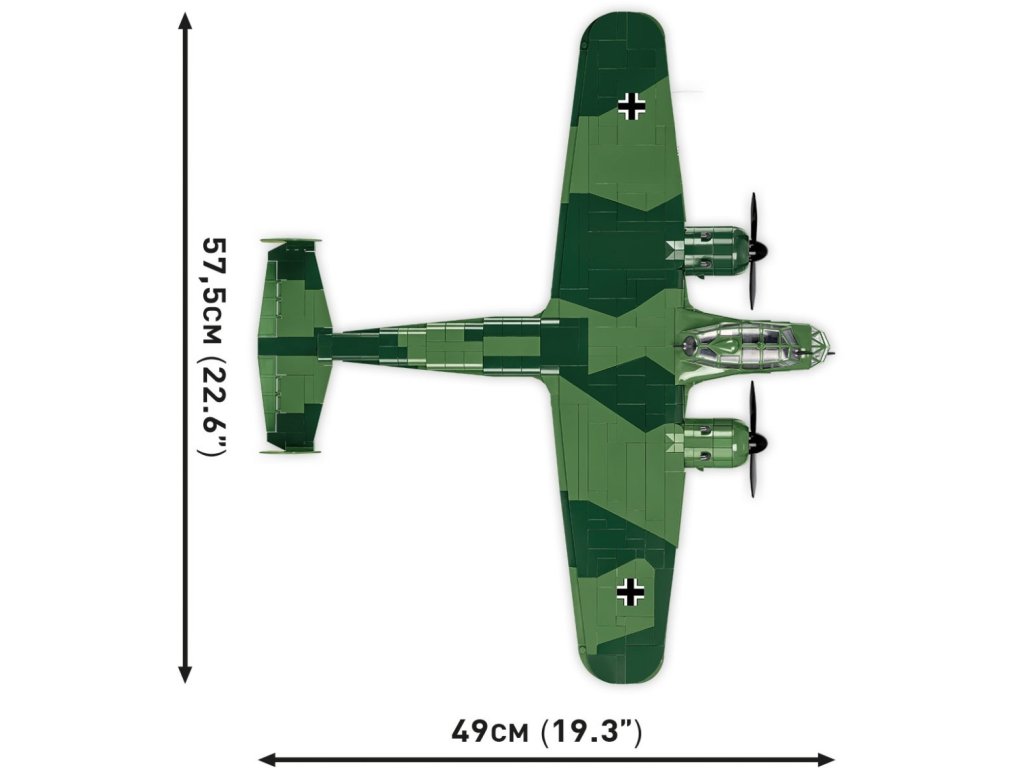 Tento model slavného bombardéru Dornier DO 17 byl pečlivě vyvinut s použitím 1 383 kostek stavebnice COBI v senzačním měřítku 1:32. Rozpětí křídel tohoto obrovského modelu je 57,5 cm! Sada používá pouze permanentní potisky, nenajdete zde žádné samolepky! Abychom lépe reprodukovali složitý tvar kokpitu a nosu letadla, vyvinuli jsme zcela nové designy kostek pomocí techniky dvoubarevného vstřikování! Kokpit, který má také potisky vybavení, obsahuje dvě figurky pilotů. Model má pohyblivé prvky, jako jsou vrtule, křidélka a otevírací poklopy pro bomby. Další potisky jsou pod křídly. Spodní strana letounu byla postavena z kostek ve zcela novém odstínu modré. Dvě figurky pilotů, které jsou součástí sady, mají pečlivě reprodukované uniformy, včetně potisků na zádech. Sada obsahuje také plaketu s názvem sady. Toto letadlo je nutností pro všechny fanoušky historie, letectví a vojenské techniky. Doplňte svou sbírku a sestavte si historii, kostku za kostkou.