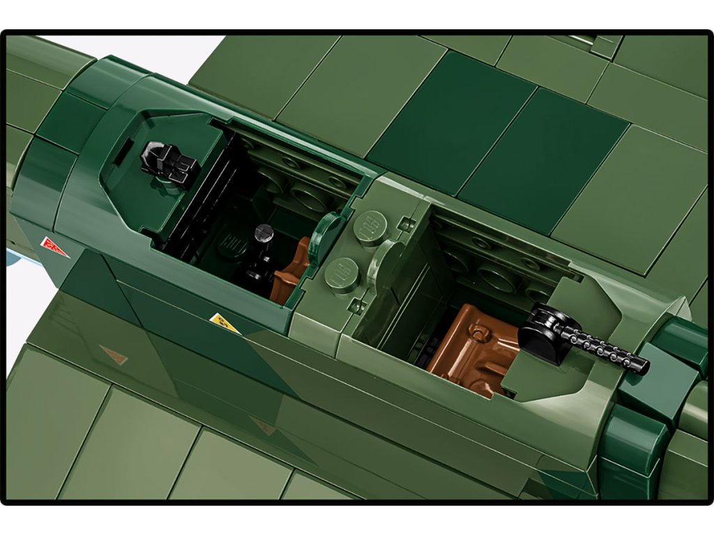 • Odolné potisky, žádné samolepky – veškeré označení, emblémy a detaily jsou natištěny přímo na kostky stavebnice, což zajišťuje estetickou přitažlivost a odolnost proti opotřebení. Viditelný „tankový emblém“ na trupu označuje počet zničených nepřátelských strojů a zdůrazňuje bojovou povahu letadla.