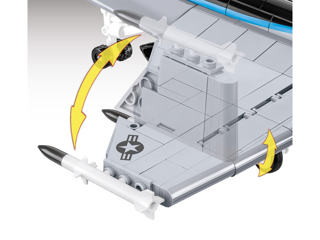 Postavte si model letounu F/A Super Hornet z filmu Top Gun Maverick. Model je v měřítku 1:48 a měří 39 x 10 cm, rozpětí křídel má 28,5 cm. Model si vystavte na stojánek, který si také postavíte ze stavebnice. Do kokpitu můžete posadit torzo figurky, kterou najdete v balení, i když neuvádíme, že stavebnice obsahuje figurku. Je to způsobeno tím, že do měřítkového modelu 1:48 se nevejde naše standardní figurka. Balení obsahuje 560 kostek stavebnice.