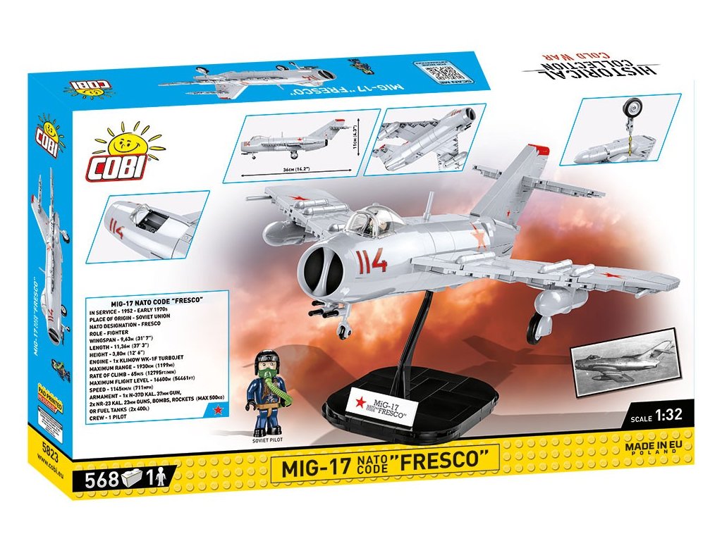 Cobi 5823 Cold War MIG-17 FRESCO, 1:32, 568 k, 1 f
