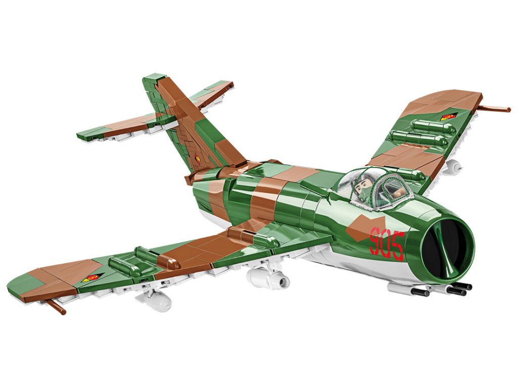 Model letounu LIM-5 (MIG-17F) byl navržen v měřítku 1:32 a skládá se z 575 vysoce kvalitních prvků. Všechny značky, emblémy a nápisy na modelu jsou potisky, které se během používání neopotřebovávají. Sada má pohyblivé prvky, jako jsou kola a otevírací kabina, do které můžete umístit skvělou figurku německého pilota. Kamufláž reprodukovaná z kostek vypadá obzvláště krásně. Sada obsahuje stojánek na vystavení modelu s plaketou s názvem letounu a označením národnosti. Díky intuitivnímu návodu založenému na jasných ilustracích je konstrukce jednoduchá. Letadlo je nutností pro všechny fanoušky letectví, armády a vojenské techniky. Je také perfektním doplňkem sbírek ozbrojených sil, studené války a korejské války. V této sérii jsme uvedli na trh letadla LIM-1 a LIM-5, MIG-15 v sovětské verzi a československé S-102 a MIG-17.