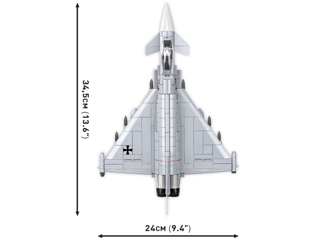 Postavte si model letounu EUROFIGHTER® v barvách německého letectva. Model je v měřítku 1:48 a měří 34,5 x 11,8 cm a rozpětí křídel má 24 cm. Má mnoho funkčních částí. Balení obsahuje 644 kostek stavebnice.