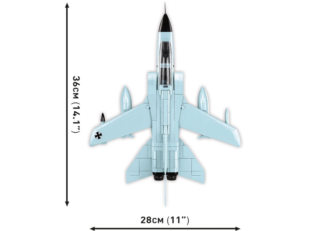 Postavte si model letounu Panavia Tornado IDS v německé verzi. Model je v měřítku 1:48 a měří 36 x 13 cm a rozpětí křídel má 28 cm. Má mnoho funkčních částí. Balení obsahuje 493 kostek stavebnice a 2 figurky pilotů.