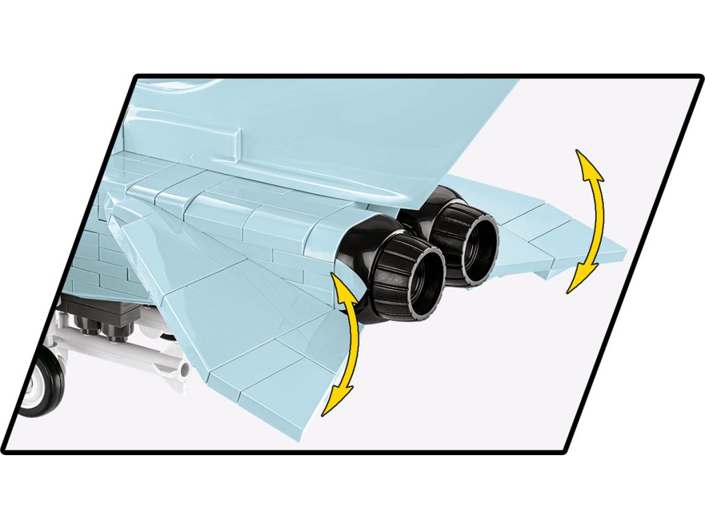 • Pohyblivé části: Stavebnice obsahuje pohyblivá křidélka a podvozek, které lze snadno oddělit a vystavit letoun na speciálním stojánku. Model je vybaven mechanismem křídla s proměnnou geometrií, který umožňuje pohyb křídla a dále zvyšuje jeho realističnost.